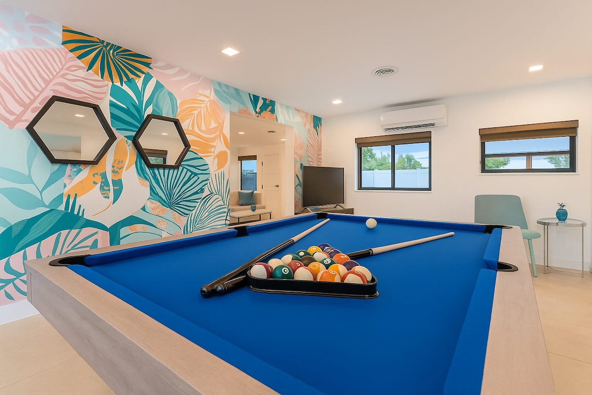 Этот удивительный мини-курорт был создан для максимального комфорта наших гостей. Насладитесь внутренним двором и террасой для бассейна с множеством мест на открытом воздухе и хижиной тики. В отеле есть синтетическая трава, идеально подходящая для детей и семьи, чтобы сидеть и играть на. Супер быстрый Wi-Fi. USB-порты в спальне. Очень удобная кровать. Смарт-телевизор, в который можно транслировать любимые фильмы. Комбинированная стиральная машина/сушилка. Наше жилье расположено в нескольких минутах езды от центра города и Голливудского пляжа/ набережной.