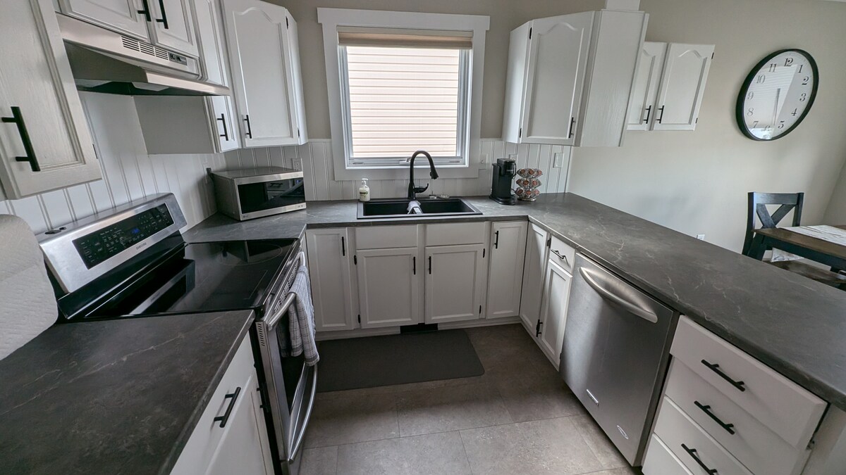 ЛЮКС С КРОВАТЬЮ KING SIZE*** Уютный люкс с 1 спальней и кроватью King size — полностью отдельный вход, новостройка с частным двором и цементным патио, парковка на улице с подключением к сети в зимний сезон. К услугам гостей кровать размера King size с затемняющими жалюзи и диван-кровать размера Queen size с роскошным одеялом, полностью оборудованная кухня и стиральная машина/сушилка. Наслаждайтесь подогревом пола и 9-футовыми потолками, создающими светлое комфортное пространство, идеально подходящее для уединения и отдыха. **** в некоторые дни возможен шум из главного жилого помещения