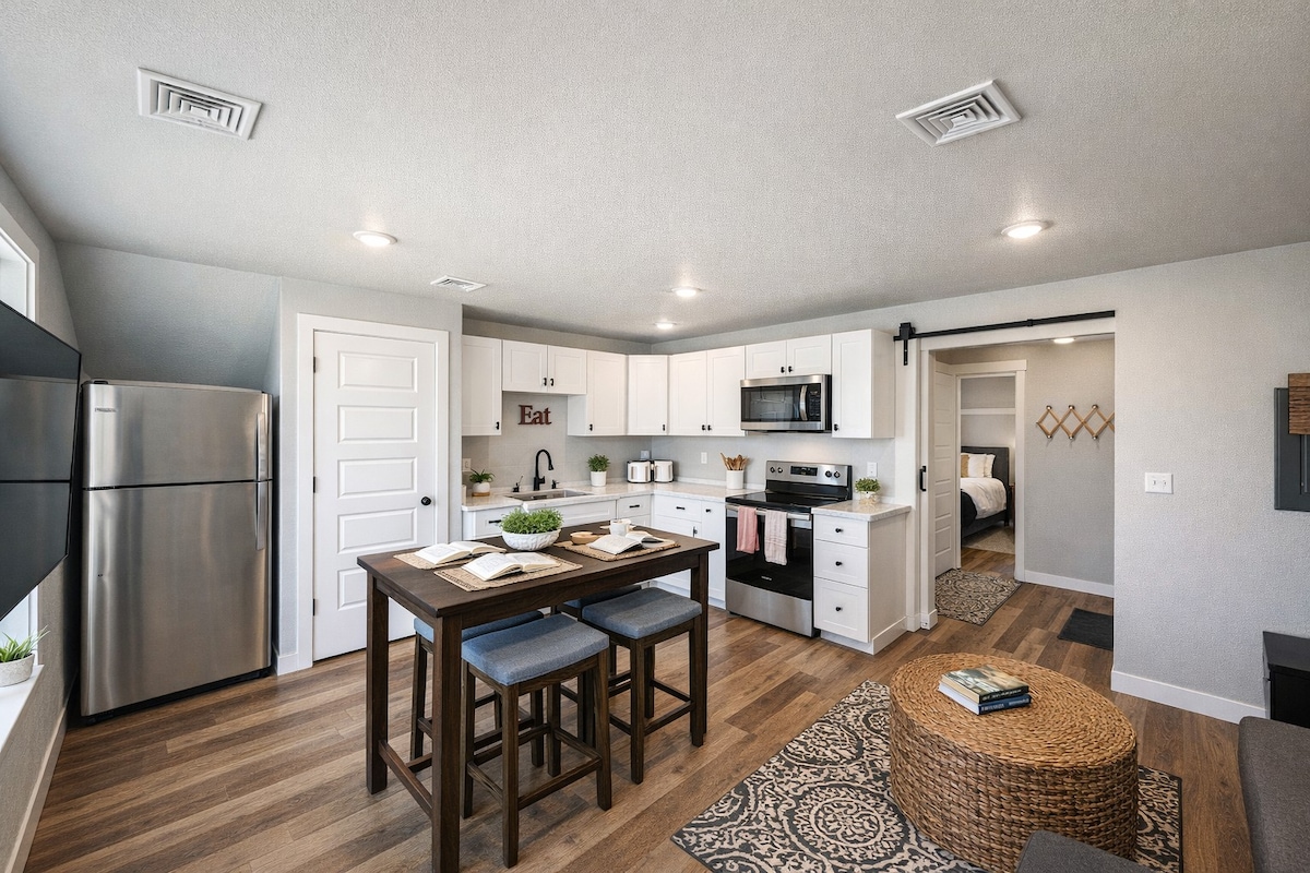Насладитесь высококлассным комфортом в этом недавно отремонтированном современном роскошном номере с 2 спальнями с кроватями размера King size, расположенном всего в нескольких минутах от центра города. К услугам гостей отдельный вход, тихая терраса с видом на дикую природу, полностью оборудованная кухня для гурманов, душевая кабина в спа-стиле, стиральная машина/сушилка и высокоскоростной Wi-Fi. Мирный, тихий и близко к лучшим туристическим местам. Примечание: для доступа необходимо выполнить следующие действия. Это отдельное жилье. Жилье разделено на две части, и эта часть находится на верхнем этаже.