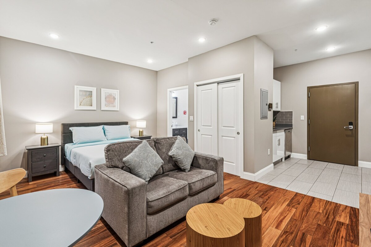 Студия в стиле ар-деко с полностью оборудованной кухней + 60-дюймовый телевизор + быстрый Wi-Fi