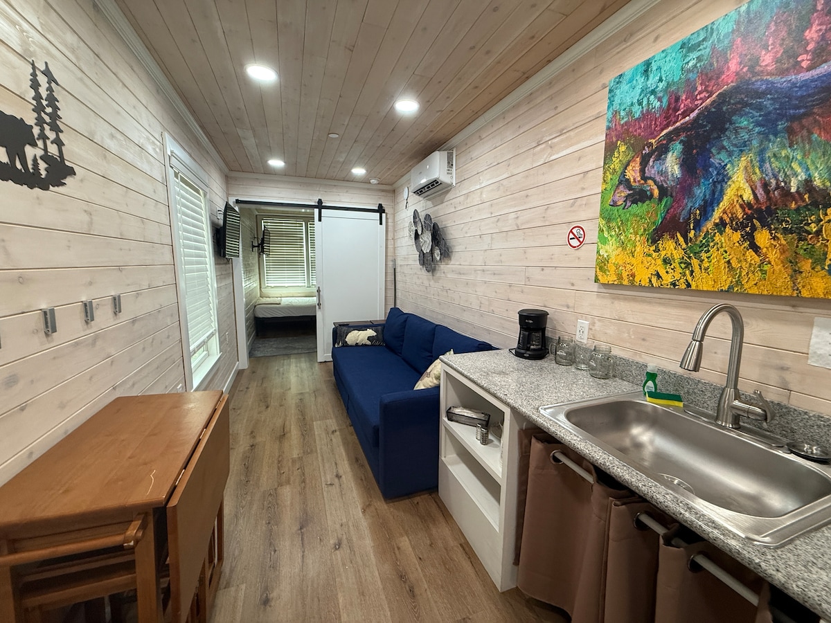 В самом центре кемпинга Seven Mountains находится крошечный дом из грузового контейнера! Роскошные удобства во всем Tiny Home. Отдохните в специально спроектированном грузовом контейнере или в зоне отдыха на открытом воздухе/джакузи, все это в окружении атмосферы, которую может предложить только кемпинг Seven Mountains! Идеально подходит для того, чтобы выпить кофе на террасе и насладиться природой.