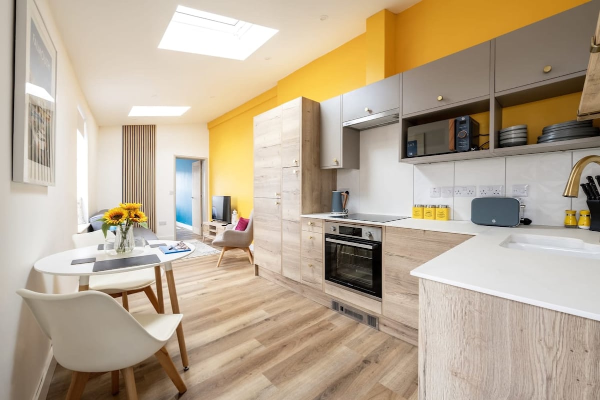 Эта очаровательная квартира расположена на тихой жилой дороге в оживленном Фалмуте и всего в нескольких шагах от воды. Пройдите через отдельный вход, чтобы найти современные интерьеры в сочетании с захватывающими цветовыми штрихами и теплыми текстурами. Она находится всего в нескольких минутах ходьбы от главной улицы города, где вы найдете все, от уютных загородных пабов до стильных независимых магазинов и ресторанов с большим рейтингом. Через дорогу есть бесплатная парковка.