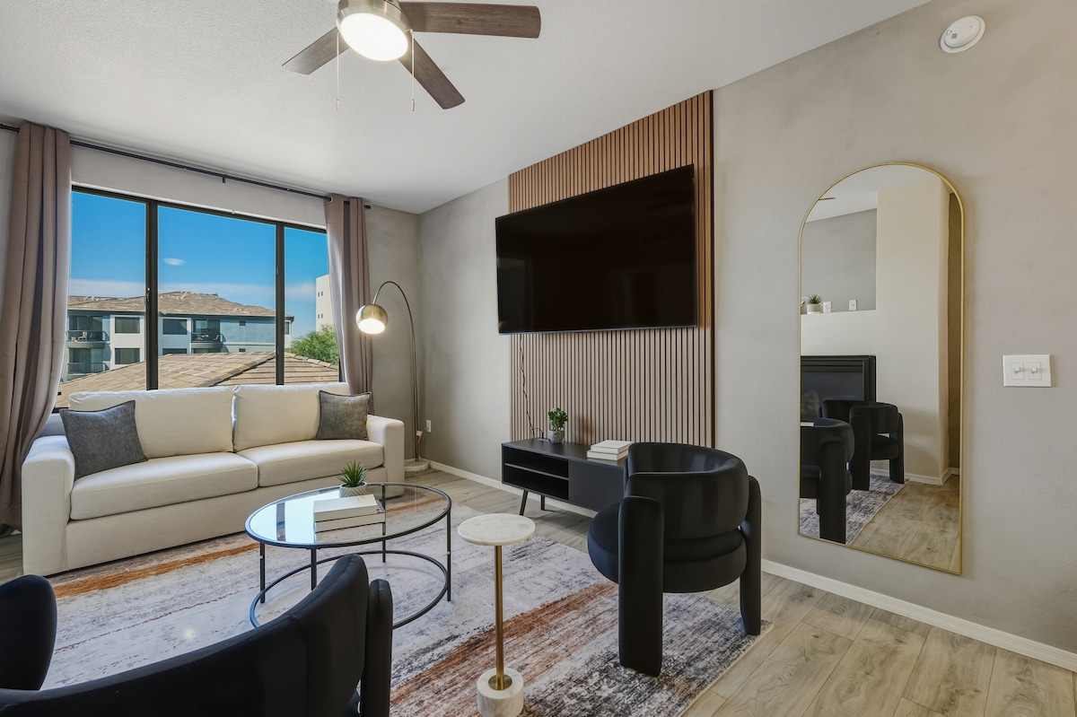 Откройте для себя Скоттсдейл в художественной роскошной квартире с захватывающей атмосферой и удобствами. The Unit: → Lightning Fast Wi-Fi → Выделенное рабочее место + монитор. → Удобная кровать размера King size → 65-дюймовый телевизор в гостиной + Netflix → 55-дюймовый телевизор с спальней и Netflix → Полностью укомплектованная кухня → Стиральная машина и сушилка →: частная парковка 5-звездочные удобства: → курортный бассейн и джакузи → Cabanas and Lounges → Полноразмерный тренажерный зал Идеально для деловых путешественников и корпоративных клиентов, которые хотят познакомиться с богатой культурой Скоттсдейла в стиле.