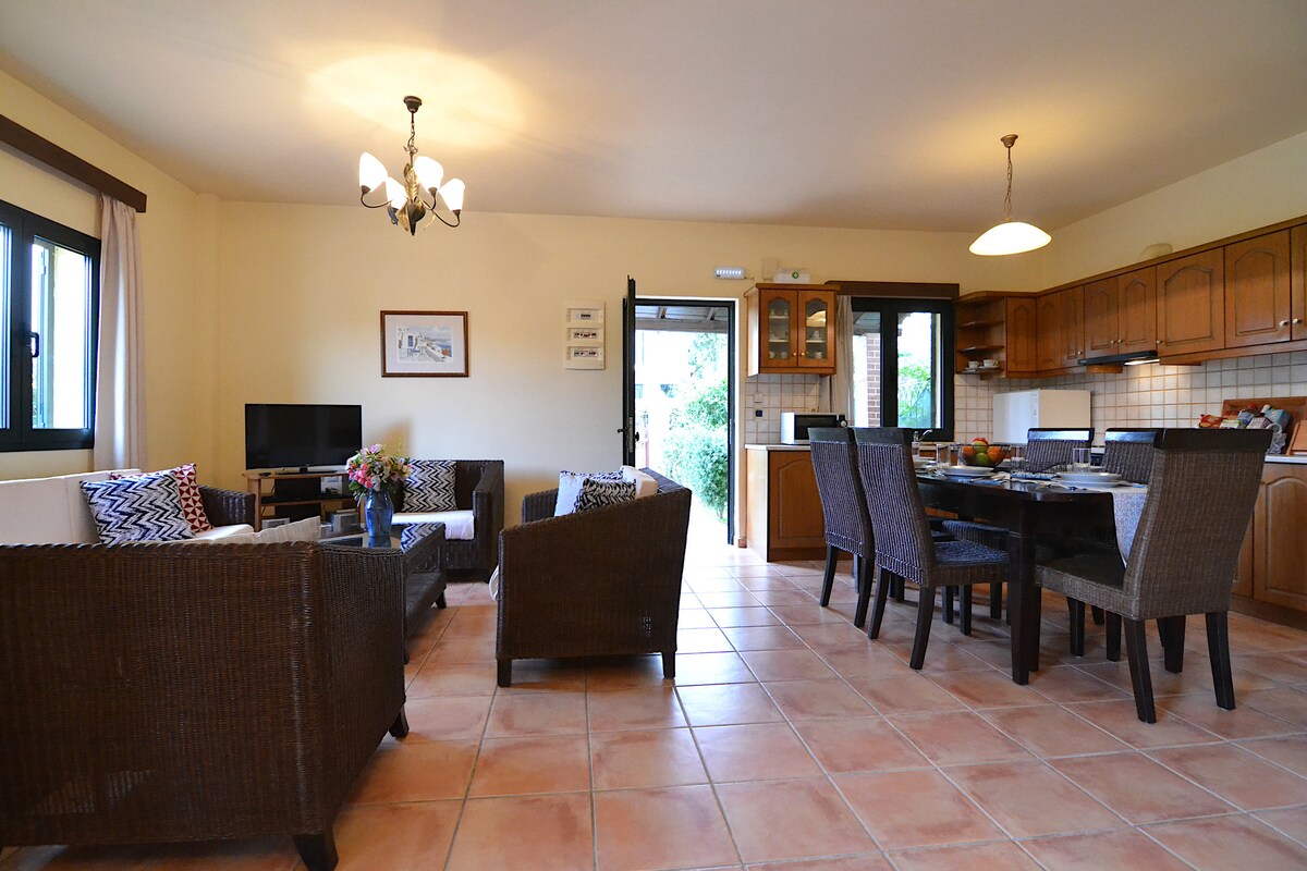 Наша вилла, часть CretanRetreat, предлагает прекрасные виды в тихом месте, идеально подходит для семей, пар и исследователей. 98 м², 25 минут от Ираклиона, 15 минут от Кносса, 30 минут от аэропорта. - 3 спальни; ‣ 2 ванные ‣ 2 кровати размера Queen size. ‣ 4 балкона; ‣ Сад ‣ Парковка на территории. ✭Одно из лучших жилья Airbnb, в котором мы останавливались! Отличное расположение с прекрасным видом и очень тихое место, окруженное оливковыми рощами. Вилла полна характера и идеально расположена для посещения Кносса и Ираклиона»