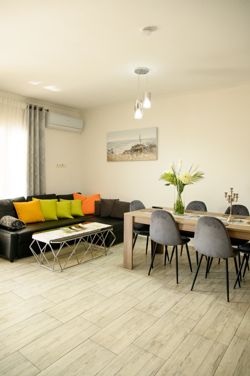Наслаждайтесь 85 м² высококачественного отремонтированного жилого комфорта с современной, высококлассной мебелью и большим количеством любви к деталям. Полностью оборудованное жилье идеально подходит для краткосрочного или длительного пребывания. ✔ Собственная парковка прямо у дома. ✔ Бассейн с шезлонгами и зонтиками ✔ Просторная, стильная атмосфера. Приезжайте, отключитесь от всего и почувствуйте себя хорошо – забронируйте нашу квартиру прямо сейчас.