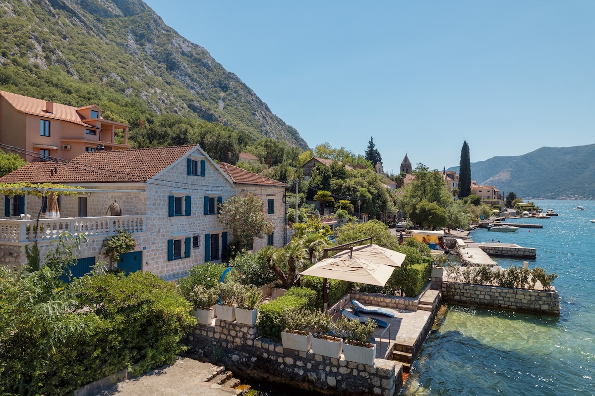 Это прекрасная квартира с 2 спальнями в более чем 200-летнем каменном доме XIX века, тихом и спокойном районе, с потрясающим и самым красивым видом . Дом отремонтирован и оборудован новой мебелью и техникой для наслаждения. Самый красивый закат в Которском заливе прямо из вашей спальни или гостиной. Полностью оборудованная кухня с холодильником, плитой. и духовка. HDTV и WIFI. Перед домом есть небольшой каменный пляж.