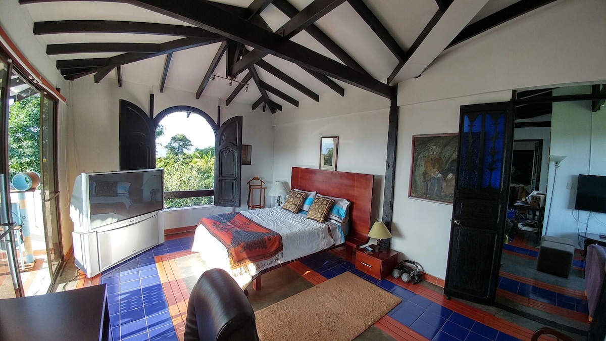 40 m Loft con sala y cocina completa. Un espacio agradable para una estadía de trabajo, estudio, o recreación. Amplio Baño con agua caliente, rodeado de naturaleza. Excelente vista hacia Pereira y Parque los Nevados. Ubicado en Serrania del Alto del Nudo. En la montaña pero cerca de la ciudad a 30 del aeropuerto y 20 del centro de la ciudad. Excelentes vías de acceso, para auto y bicicleta de montaña, ruta de transporte público. Punto de partida y centro para explorar el Eje Cafetero.