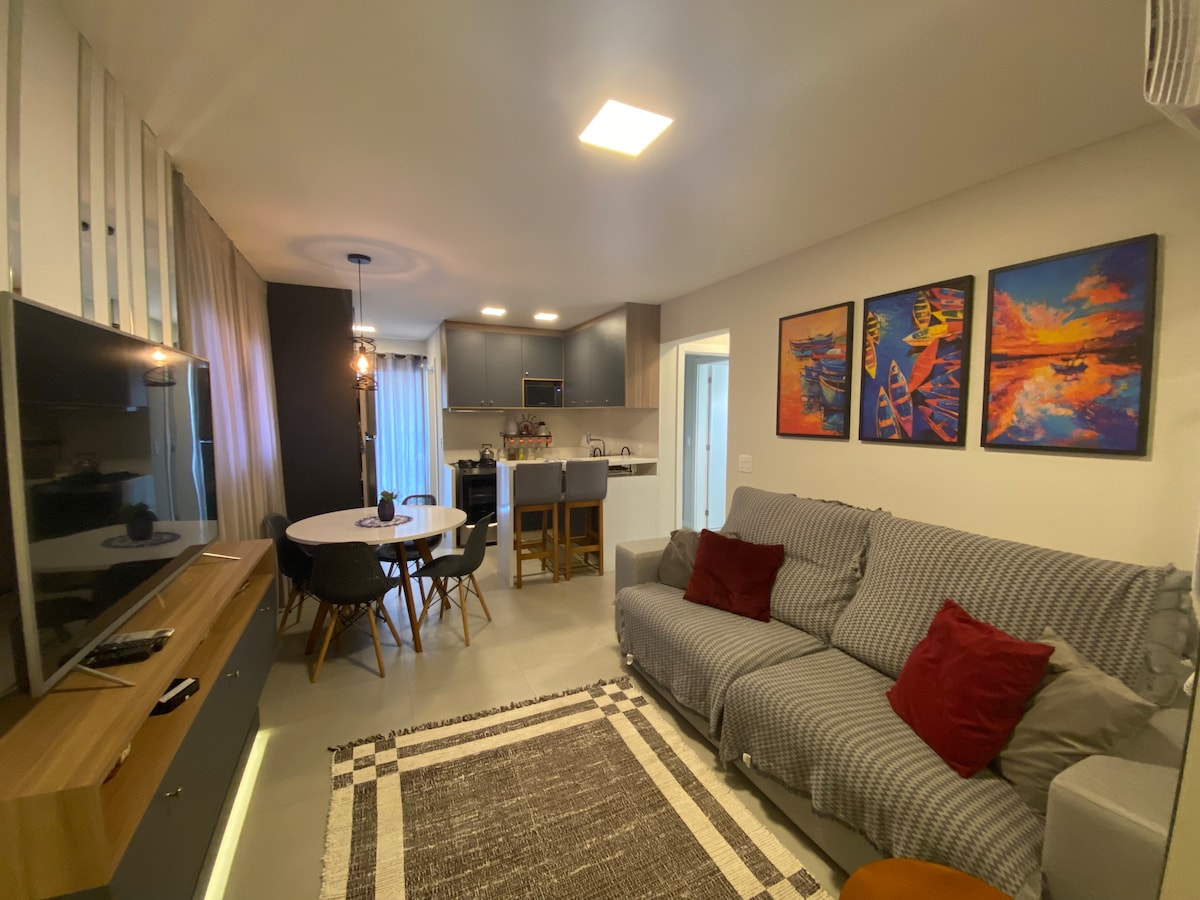 Relax in this cozy apartment in Porto Belo! Just 600m from Perequê Beach, you can enjoy an incredible balcony with barbecue, perfect for moments of leisure and relaxation. The apartment has a comfortable living room with TV, a fully equipped kitchen and 2 air-conditioned bedrooms that guarantee peaceful nights. An unforgettable experience awaits you. Book now!