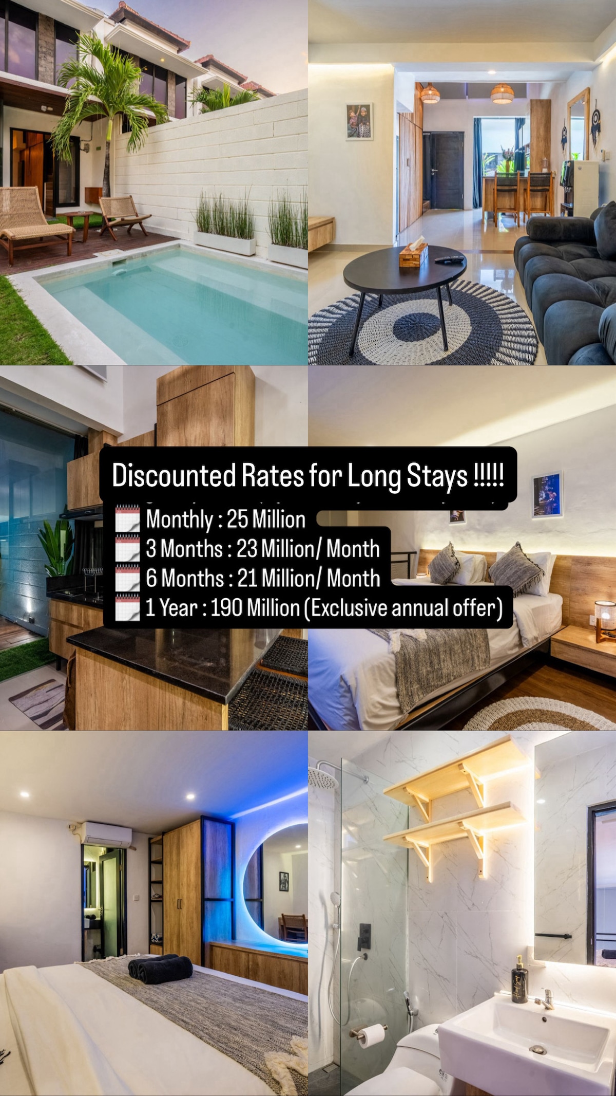 Надежный высокоскоростной Интернет, кабельное телевидение, все счета и ежедневная уборка включены. Бесплатный завтрак с фруктами по запросу. Остановитесь в центре Чангу на улице Бату-Болонг — в нескольких шагах от лучших кафе, баров и серфинга мирового класса. Наслаждайтесь естественным освещением, удобной кроватью. Собственный бассейн и солнечная терраса, вид на океан, мраморный обеденный стол на 6 человек и высокие потолки.
