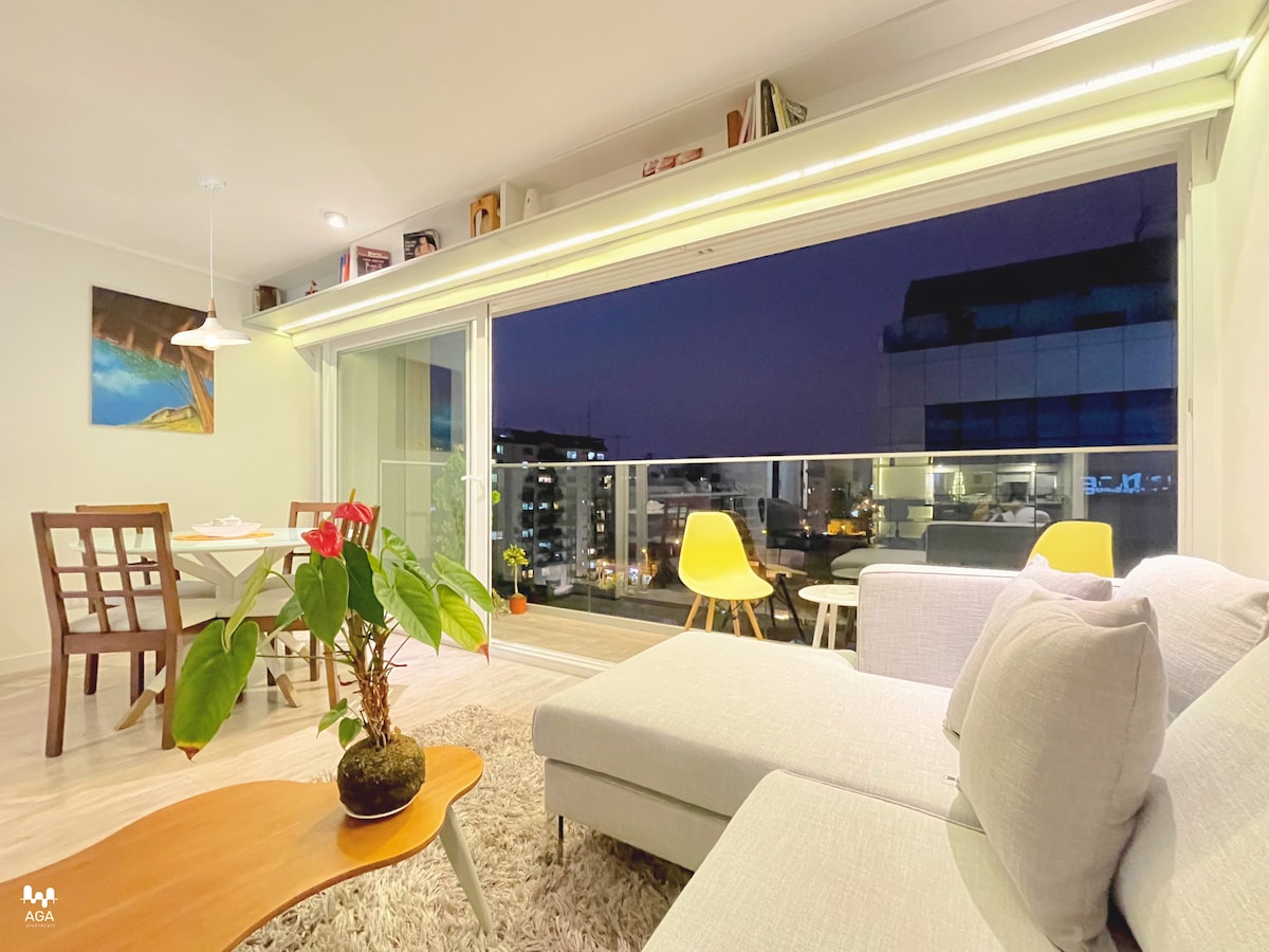 Refined boutique art loft in the heart of Miraflores, steps from Kennedy Park. Designed for travelers who value calm, quality, and thoughtful architecture. A king suite, 1.5 baths, and a private green balcony create a serene urban retreat. Natural light, curated art, and soft ambient lighting define the space. Fast WiFi, fully equipped kitchen, washer/dryer, elevator, and 24/7 self check-in. Walk to cafés, restaurants, shops, and the oceanfront.