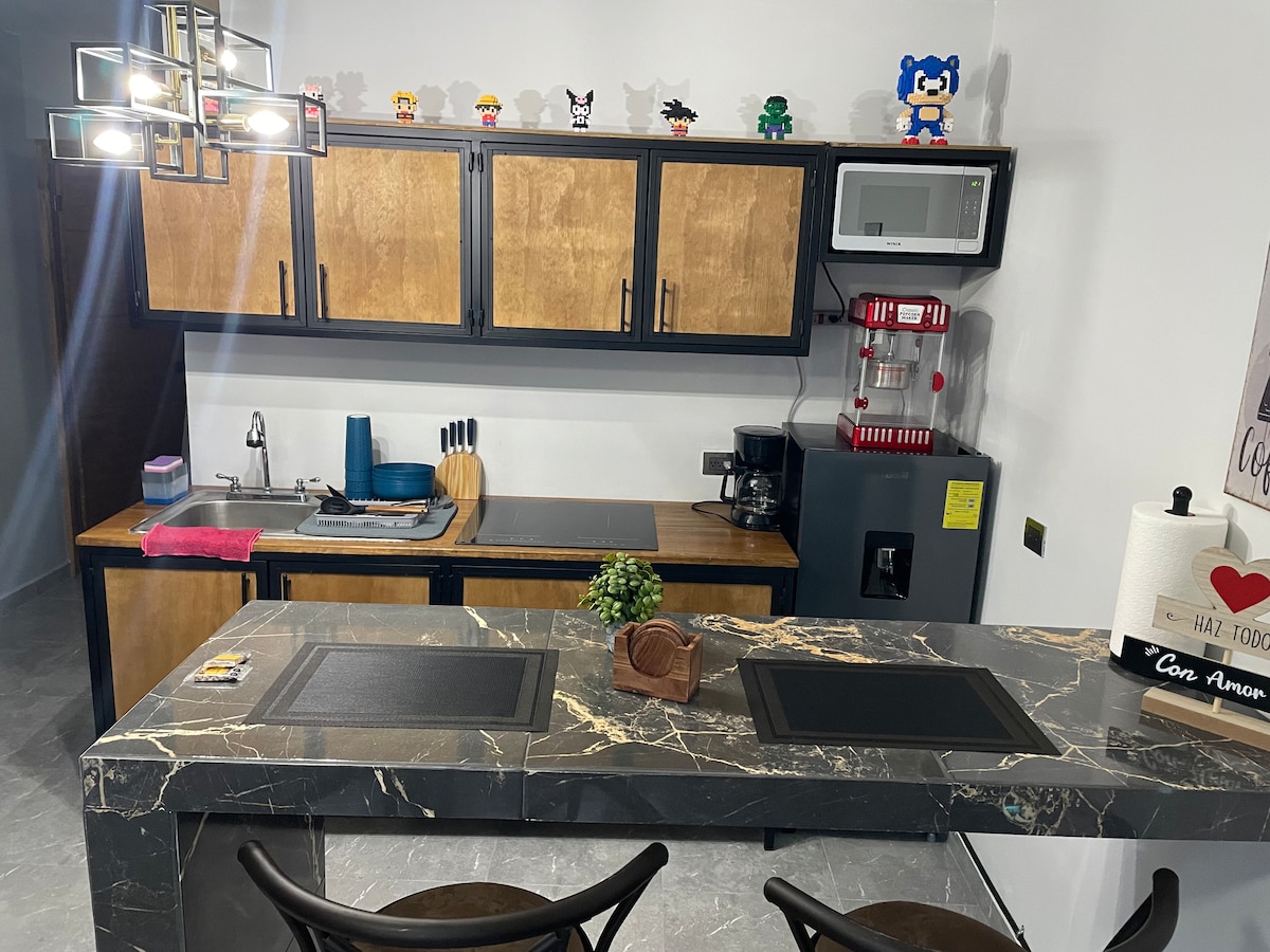 Si FACTURAMOS!!! Quédate en Instalaciones completamente nuevas, en fraccionamiento privado. Contamos con todo lo que necesitas para tu estancia cómoda, tranquila, segura con un estilo industrial cerca del aeropuerto. Contamos con LAVADORA Y SECADORA Todo es nuevo!!!!