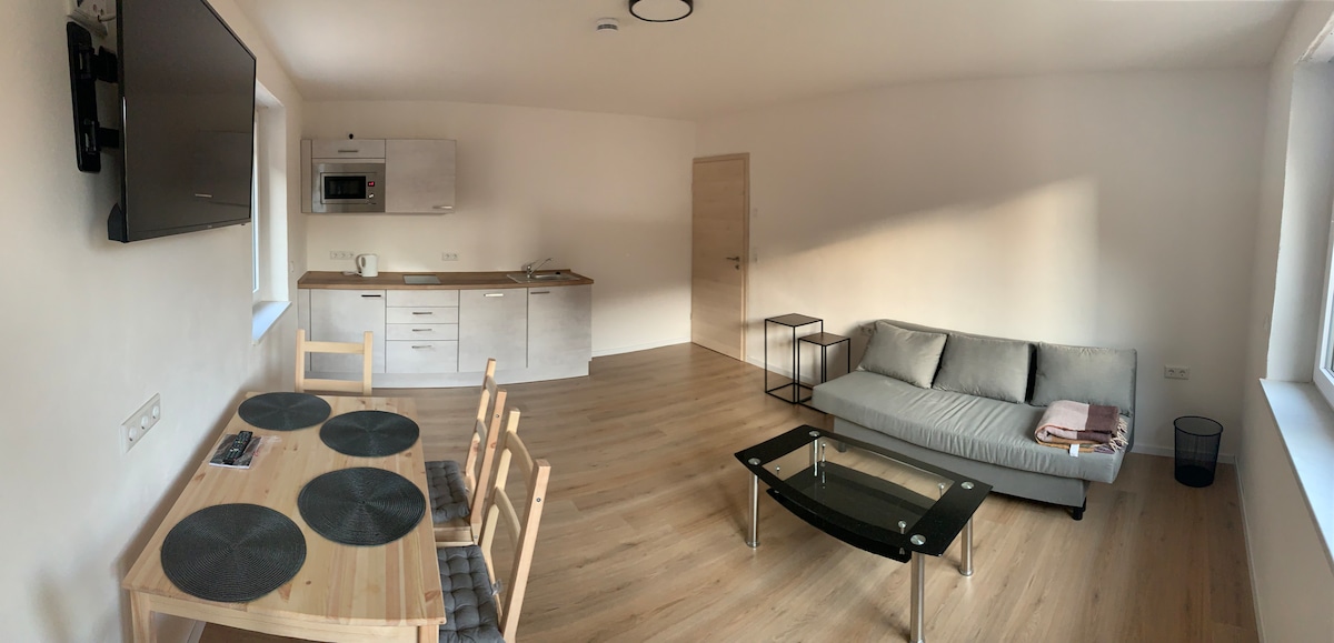 Добро пожаловать в нашу просторную квартиру на первом этаже в сельской местности с балконом и террасой. В ней есть отдельный вход, гостиная, кухня/столовая и спальня. Квартира для некурящих и проживание с животными запрещено. Квартира расположена в районе Лихтенау, в 2 км. Есть магазины, рестораны, поле для гольфа и открытый бассейн.