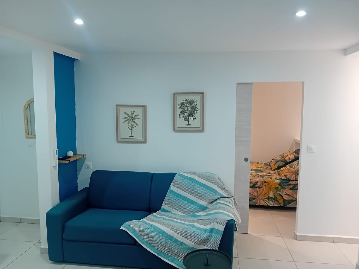 Ищете спокойный кокон на природе? Положите свои сумки в это нетипичное место в центре Гваделупы, сочетая в себе простоту и комфорт! В тропическом саду вы можете насладиться красивым жилым пространством с кухней на террасе, окруженной природой, двумя спальнями (двуспальная кровать/две односпальные кровати) и ванной комнатой. Все в 5 минутах от всех удобств!