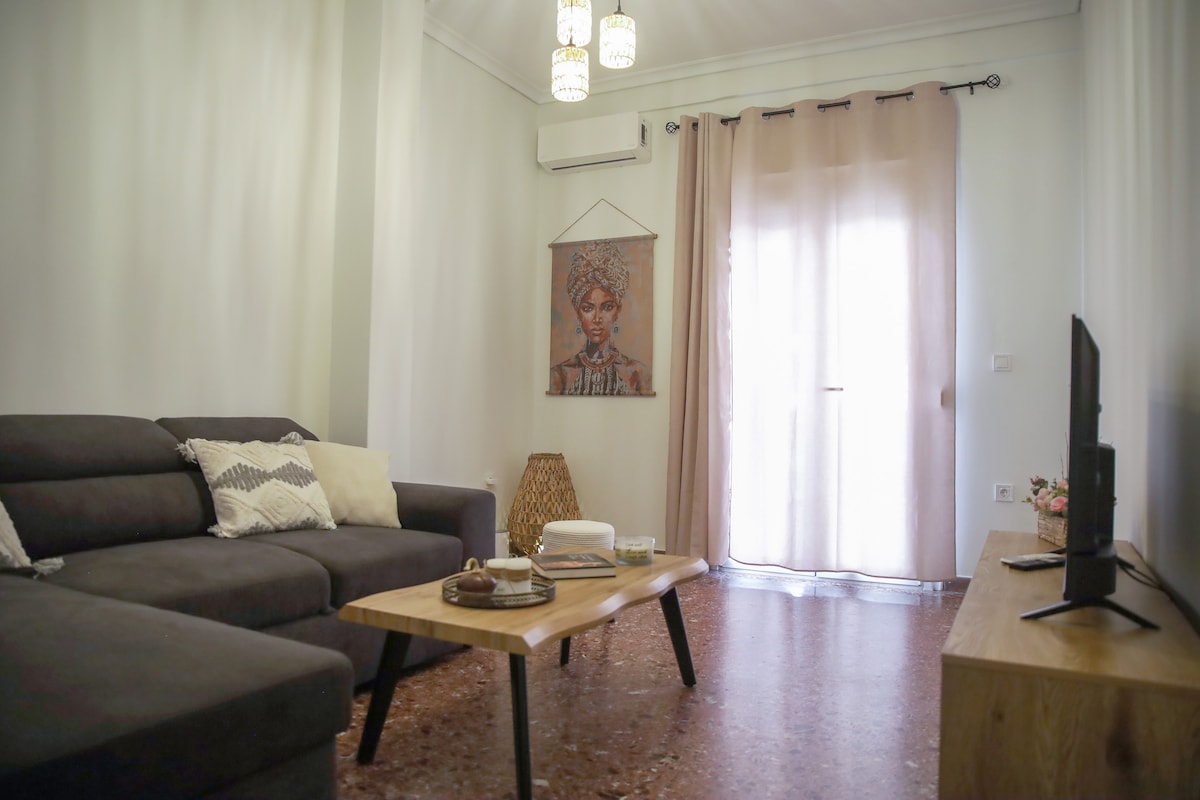 Привлекательное жилье в историческом районе в центре Афин. С легким доступом, он находится очень близко от метро, автобусных и трамвайных остановок, а также приятной прогулки до Акрополя, музея, а также Филопапу, так как до него около 1,6 км пешком. Подходит для семей и друзей. К услугам гостей гостиная, обеденная зона, 2 спальни и полностью отремонтированная ванная комната и кухня.