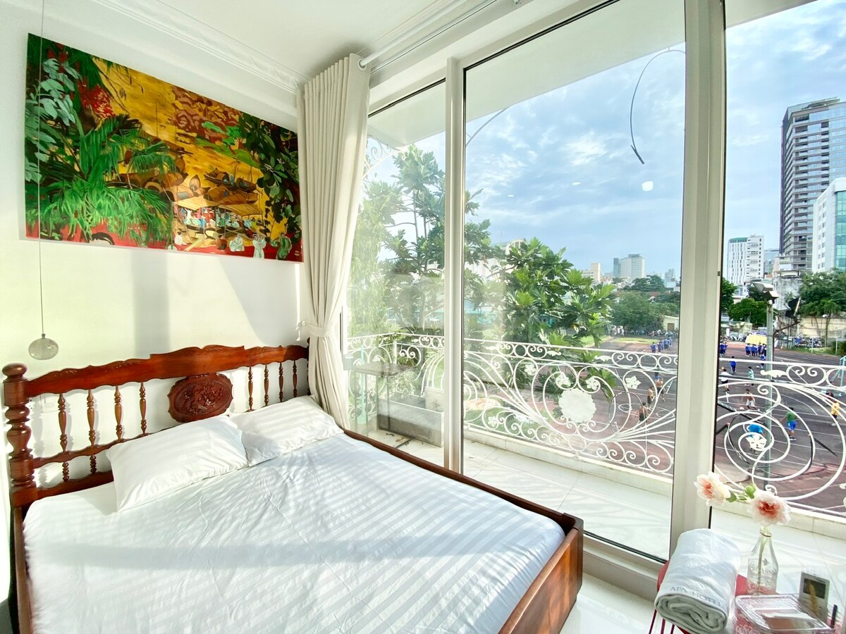 ☀️Ваш стильный оазис в центре Сайгона ☀️ Наша квартира, расположенная в безопасном и аутентичном переулке (hẻm), станет вашим личным убежищем, всего в нескольких шагах от гастрономического рая на улице Нгуен-Чай. В нашем здании есть уникальный секрет — на первом этаже находится Latte Lounge, одна из лучших кофеен в районе. Это идеальное место для всех типов путешественников, которые хотят познакомиться с настоящим Хошимином. Откройте для себя скрытые уличные лотки с едой, исследуйте оживленный рынок Бен Тан.