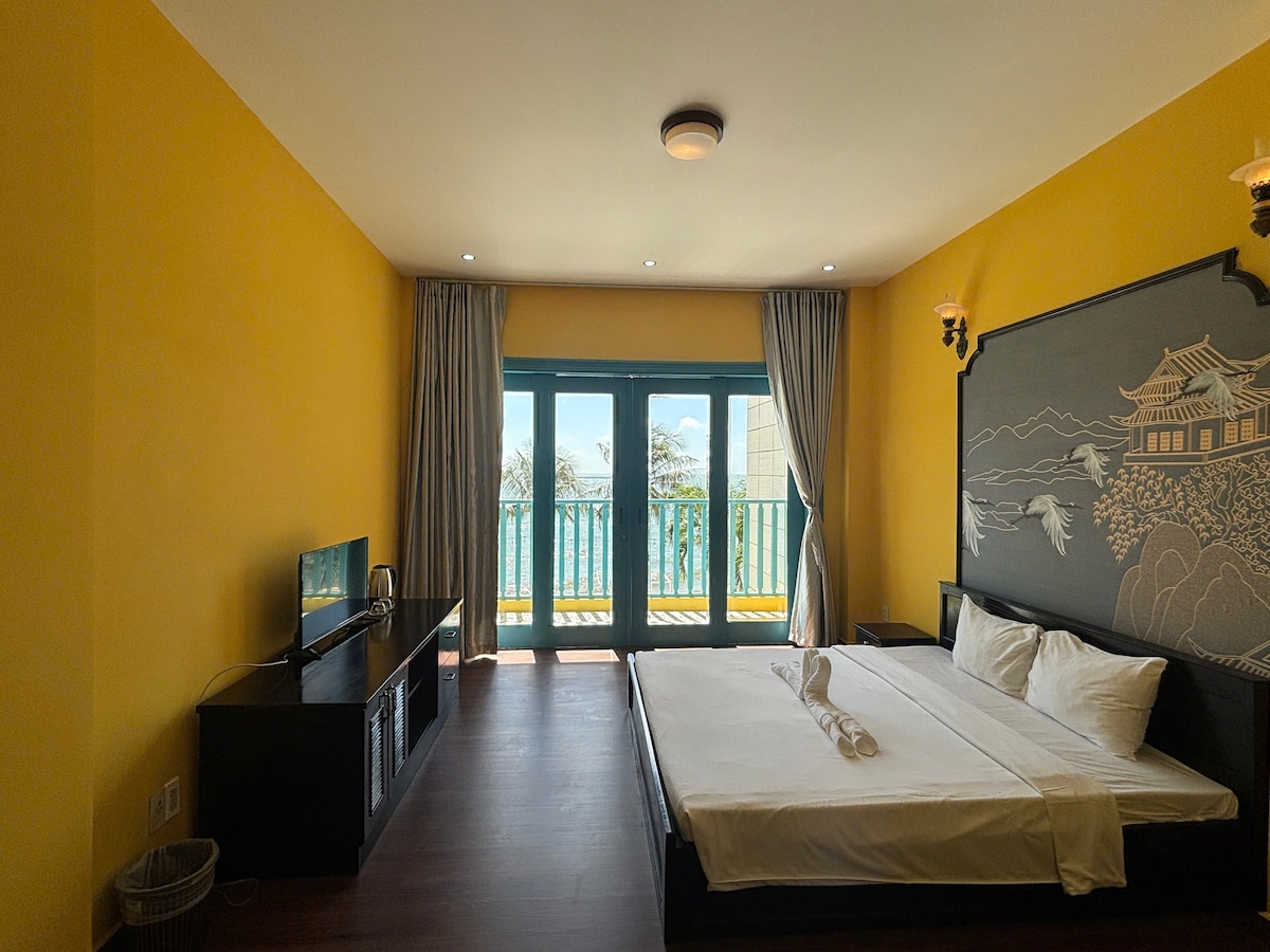 Большая квартира для семьи, есть 2 пары кроватей в 2 отдельных спальнях. Гостиная подходит для семейного отдыха, чтобы готовить и наслаждаться вместе. Большой балкон также поможет вам почувствовать себя большим пространством перед морем.