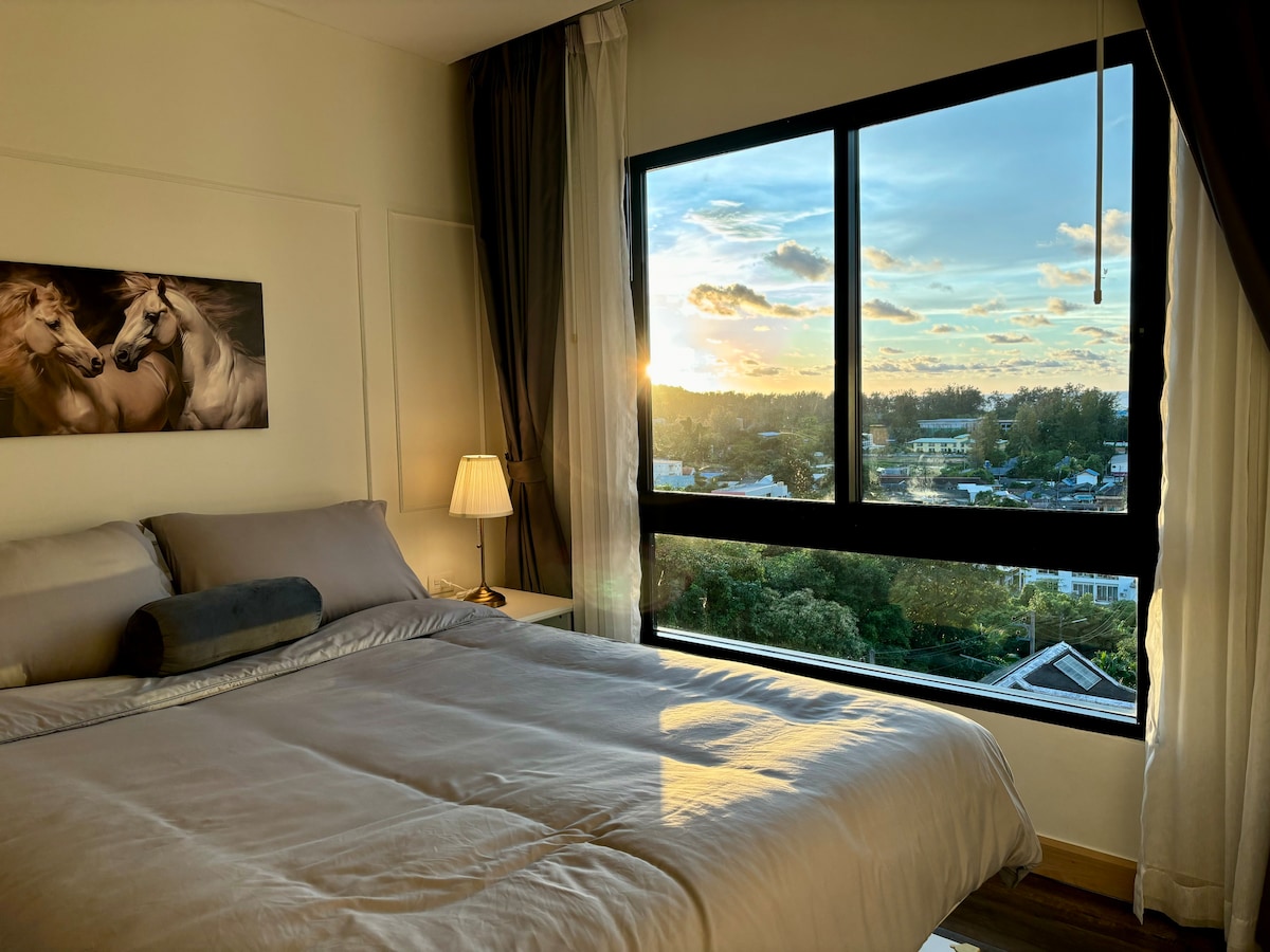Стильная квартира с видом на бассейн, 1 спальня, 15 минут до Патонга