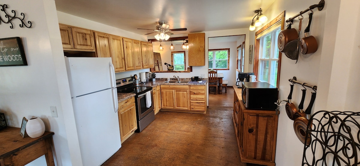 Красивая небольшая ферма, расположенная на тихой гравийной дороге графства. Легко 11 минут езды до государственного парка Беннетт-Спрингс для плавания, походов или рыбалки. Наслаждайтесь открытой планировкой с 2 палубами. В главной ванной комнате есть очень большой душ и отдельная большая ванна для отдыха. Во всех спальнях есть гардеробные. Большой кухонный стол для просторных сидений. Комфортное расположение вокруг настоящего камина. Это также часть рабочего ранчо Лонгхорн, поэтому ожидайте увидеть красивый скот. Можно организовать экскурсию по главному ранчо.