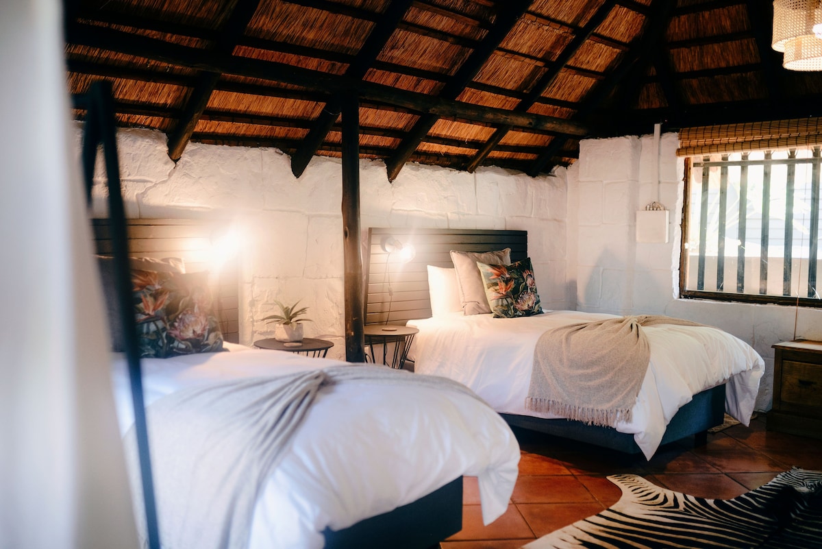 Добро пожаловать в наш комфортабельный домик с самообслуживанием, расположенный в самом сердце гор Магалисбурга. Проведите умиротворяющий отдых в биосфере ЮНЕСКО рядом с ущельем Верхнего Тонкуани. Расслабьтесь с ногами в реке Стеркструм, которая расположена менее чем в 50 метрах от дома. Независимо от того, ищете ли вы приключения или просто хотите расслабиться, наше расположение предлагает множество развлечений как в нашем поместье, так и в близлежащих районах.