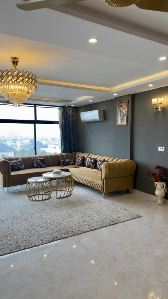 ✨ Насладитесь роскошной жизнью над городом — пентхаус Skyline в Лахоре Добро пожаловать в ваш уединенный уголок под небом — красиво оформленный пентхаус на верхнем этаже, расположенный в центре Бахрии-Таун, Лахор. Это жилье создано для тех, кто ценит комфорт, стиль и захватывающие виды. Благодаря окнам от пола до потолка квартира наполнена естественным светом, а из гостиной открывается потрясающий панорамный вид на город.
