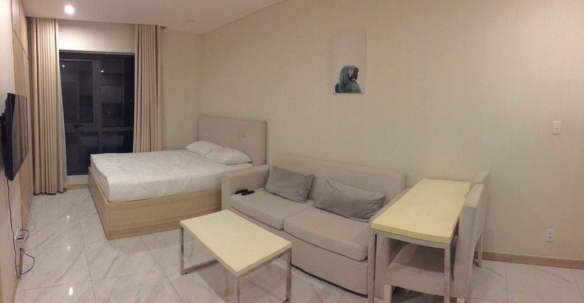 Комната в аренду может быть использована для проживания, работы и встреч. Комната оснащена всеми удобствами для работы и отдыха, такими как Wi-Fi, конференц-зал, печатная машина, TIVI и проектор. Умный диван-кровать позволяет гостям ночевать с тремя людьми или иметь двухместную комнату, которую можно использовать для спальни, но которая используется в качестве офиса для работы в другое время. В Sky Center много супермаркетов, ресторанов, бассейн, тренажерный зал, стиральная машина, услуги парковки для гостей.