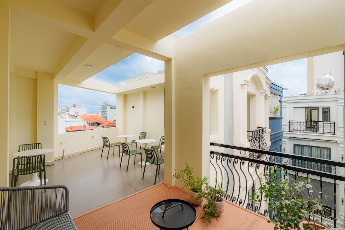 This is a cozy, modern studio with a garden view, just 05 minutes from Tan Son Nhat Airport, located in a quiet, secure residential area. Fully equipped with air conditioning, a kitchenette, a workspace, and a large smart TV, it offers a peaceful stay. Enjoy flexible check-in/check-out with a private automated door system. Just 20 minutes by taxi to Nguyễn Huệ Walking Street and near local restaurants and Hoang Van Thu Park for morning exercise.