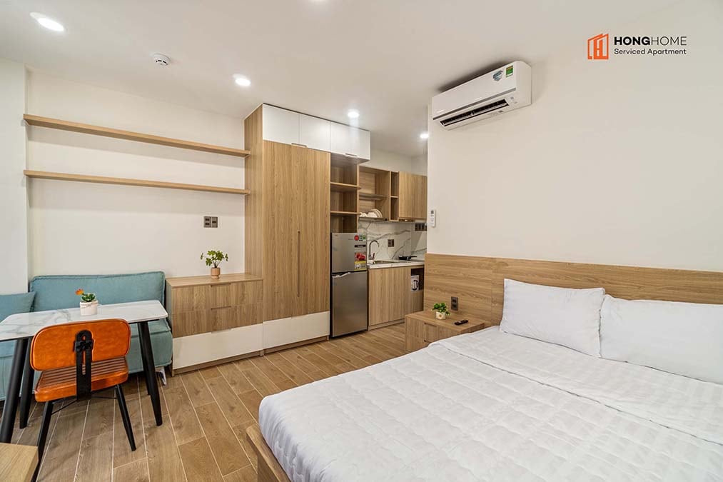 Основанная в 2023 году. Мы предлагаем высококачественные апартаменты Short and Long Let Serviced, расположенные прямо на оживленной улице со знаменитыми кафе, ресторанами, Circle K и удобными магазинами поблизости, и всего в нескольких минутах ходьбы от пешеходной улицы Буй Вьен, парка Тао Дан. Экономично по сравнению с отелями, мы предоставляем 1 апартаменты BR с уединением, современным стилем, кухней, балконом, звуконепроницаемыми дверями и окнами, рабочим столом, садом на крыше, лифтом, регулярной уборкой и комфортом «Дома из дома».