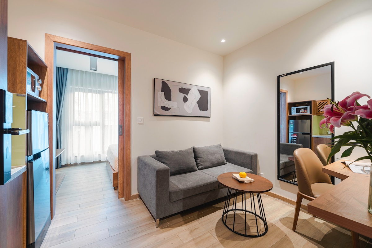 ✻ A penthouse apartment (120m2) features 2 bedrooms (1 king bed each room), 1 living room ✻ Located in the heart of the city. Plenty of famous landmarks, food and drink nearby ✻ Air conditioning is available. Fully equipped kitchen, washing machine, iron, hair dryer, etc ✻ Smart TV 43 inch. Fast wifi internet. Laptop friendly work space ✻ Free car parking on premise. ✻ 24/7 front desk support. Motorbike & car for rent, airport shuttle ✻ Private balcony w panorama city view