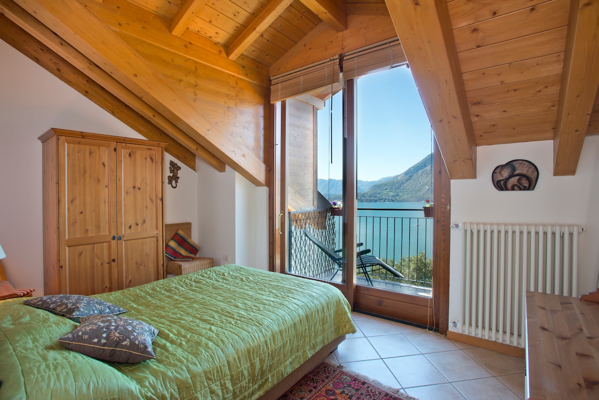 Наша потрясающая квартира с 2 спальнями и прекрасным видом на озеро Комо и окружающие Альпы. Деревянные потолки. 3 балконы. Элегантная мебель со всеми удобствами. Просыпайтесь с невероятными видами, исследуйте озеро днем, наблюдайте за звездами ночью...просто выберите балкон!