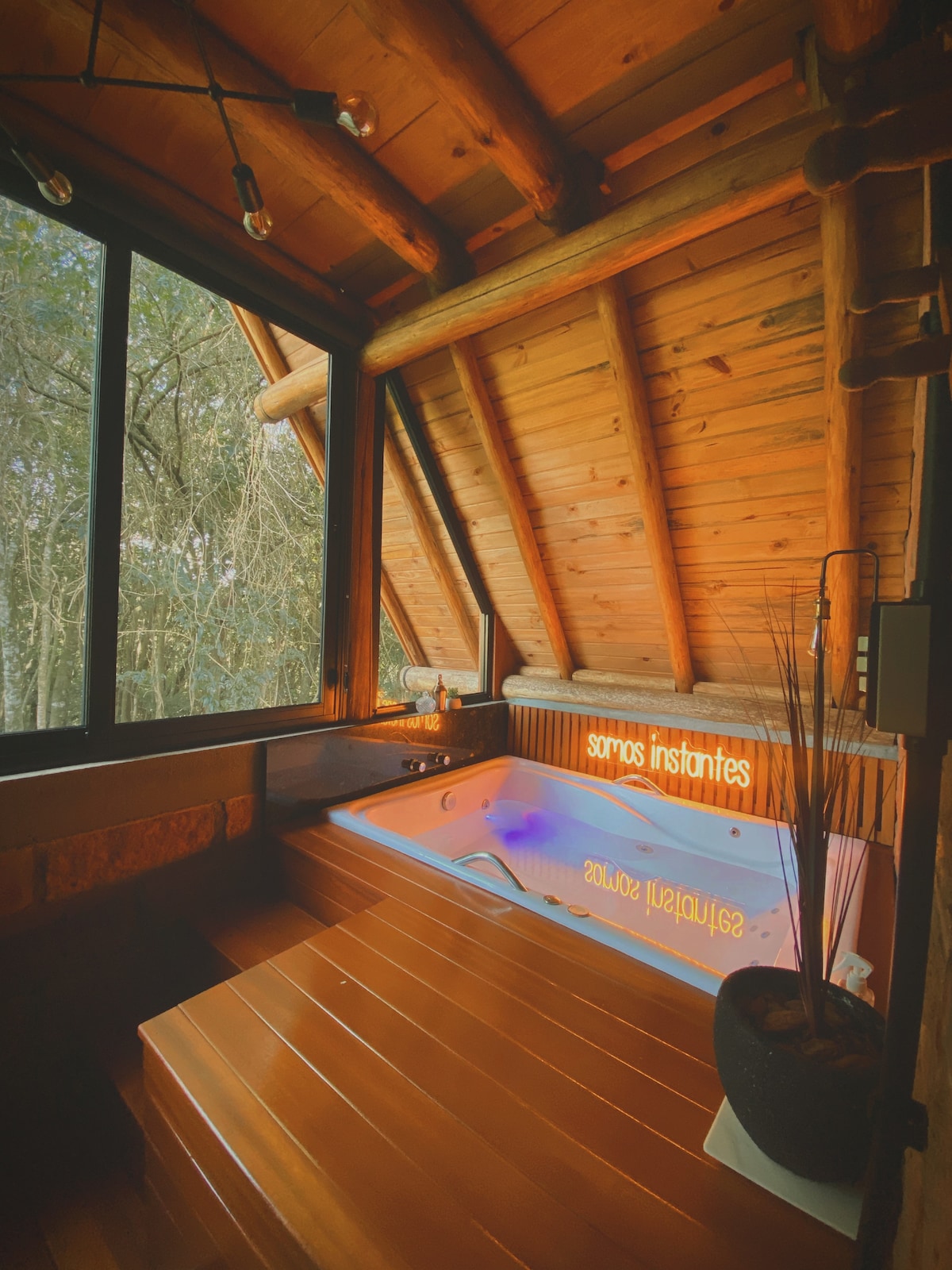Cabana Moderna в Серра-Гауча с щедрой корзиной для завтрака. Предназначен для тех, кто ищет изысканные и технологические объекты. Кондиционер, кондиционер и пол с подогревом, обеспечивающие круглогодичный комфорт. Для досуга есть частный кинотеатр, подвесной камин, костер на полу и джакузи. Он находится всего в 30 км от Грамадо и предлагает идеальный баланс между современностью и природой, с захватывающим видом на горы.