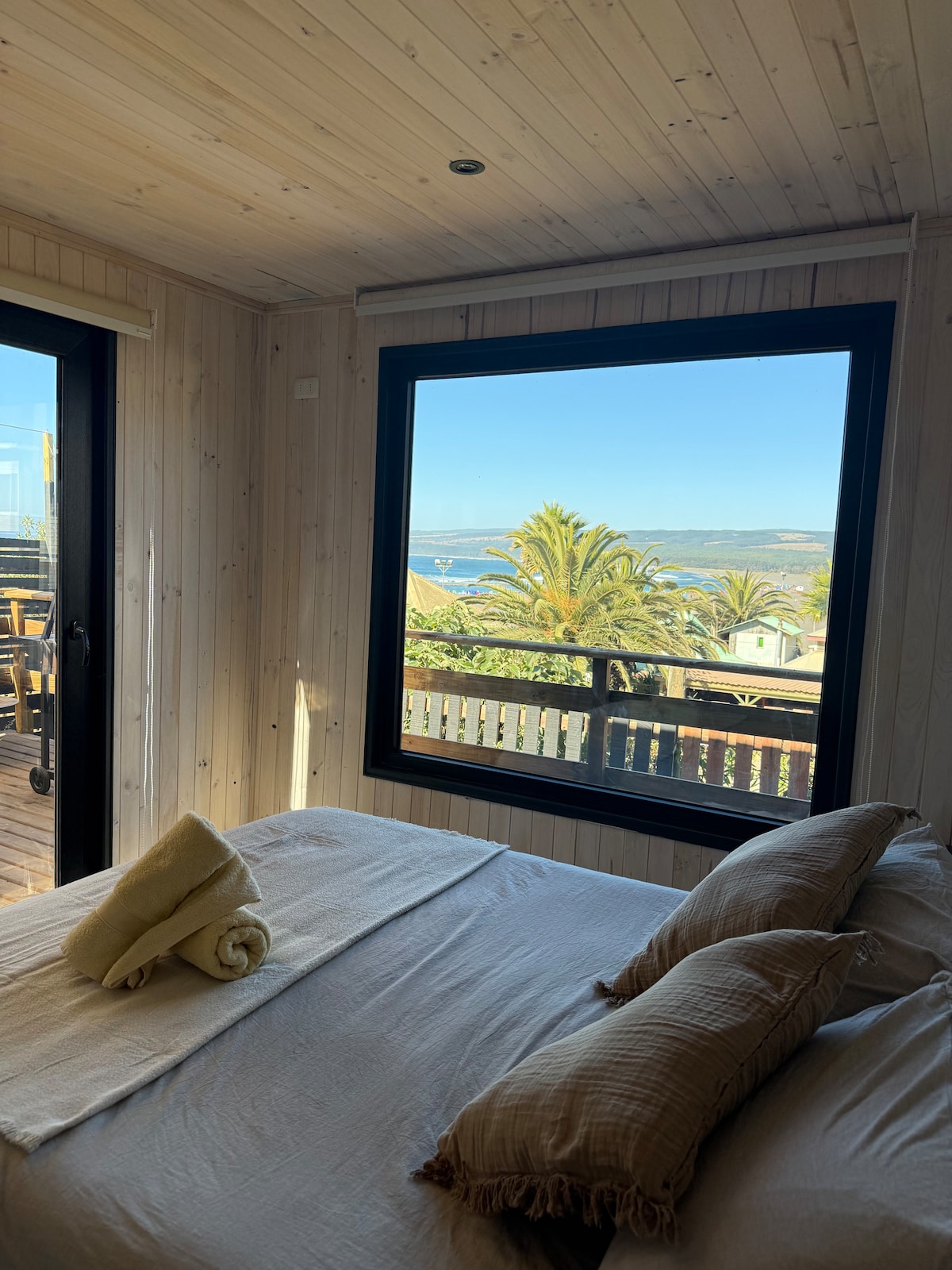 Отдохните в этом уникальном и тихом месте на берегу моря, с ногами в песке Пунта-де-Лобос. Роскошный домик с двуспальной кроватью и двухъярусной кроватью для детей. Джакузи для неограниченного использования, за исключением дождливых дней. Полное оборудование. Wi-Fi STARLINK. Двухместные и односпальные деревянные стулья, цифровая кухня, столовые приборы, просторная ванная комната, кондиционер, холодильник, электрическая духовка, электрический гриль, парковки, большие террасы. Мезон на террасе. Домик площадью 25 кв. м.