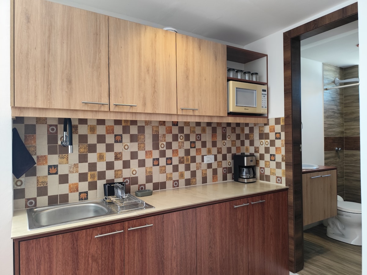 Современный лофт, 21-й этаж, новое здание с автономным генератором света, идеально подходит для деловых поездок или по особому случаю, уникальный вид на город. Привилегированное расположение в северном центре Кито рядом с парком Ла-Каролина, в дополнение к нескольким шагам вы найдете торговые центры и финансовые учреждения. К услугам гостей парковка, Wi-Fi, ванна, общая стиральная машина/сушилка, предметы гигиены, тренажерный зал и бассейн.