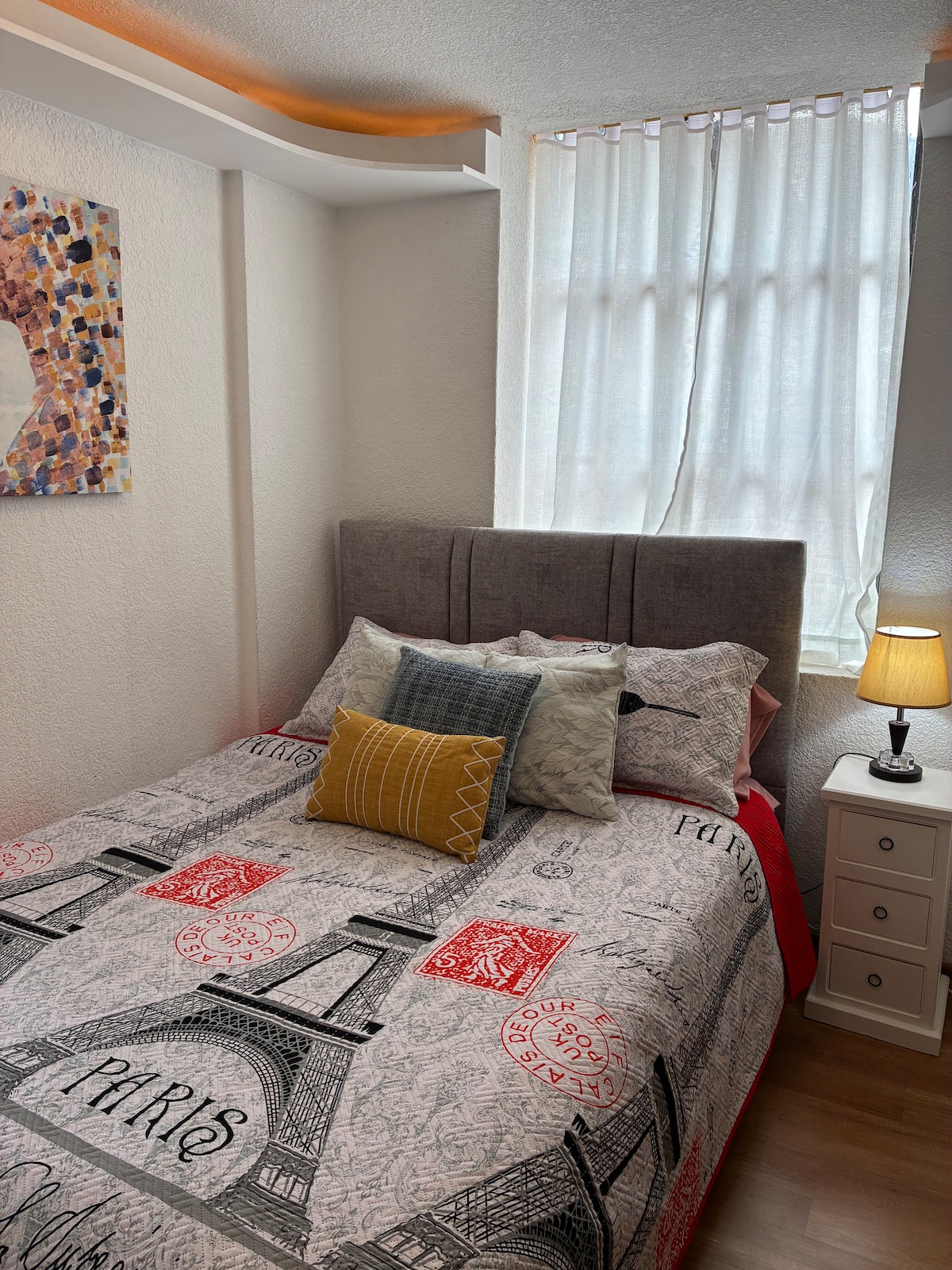 Наслаждайтесь пребыванием в тихом, элегантном жилье, окруженном природой, идеально подходящем для туризма и деловых поездок. Здесь есть уютная спальня, гостиная, кухня, ванная комната, парковка, Wi-Fi, телевизор, крытая зона для барбекю, тренажерный зал и бассейн. В 5 минутах от торгового центра El Bosque, в 10 минутах от станции метро, в 30 минутах от Митад-дель-Мундо.