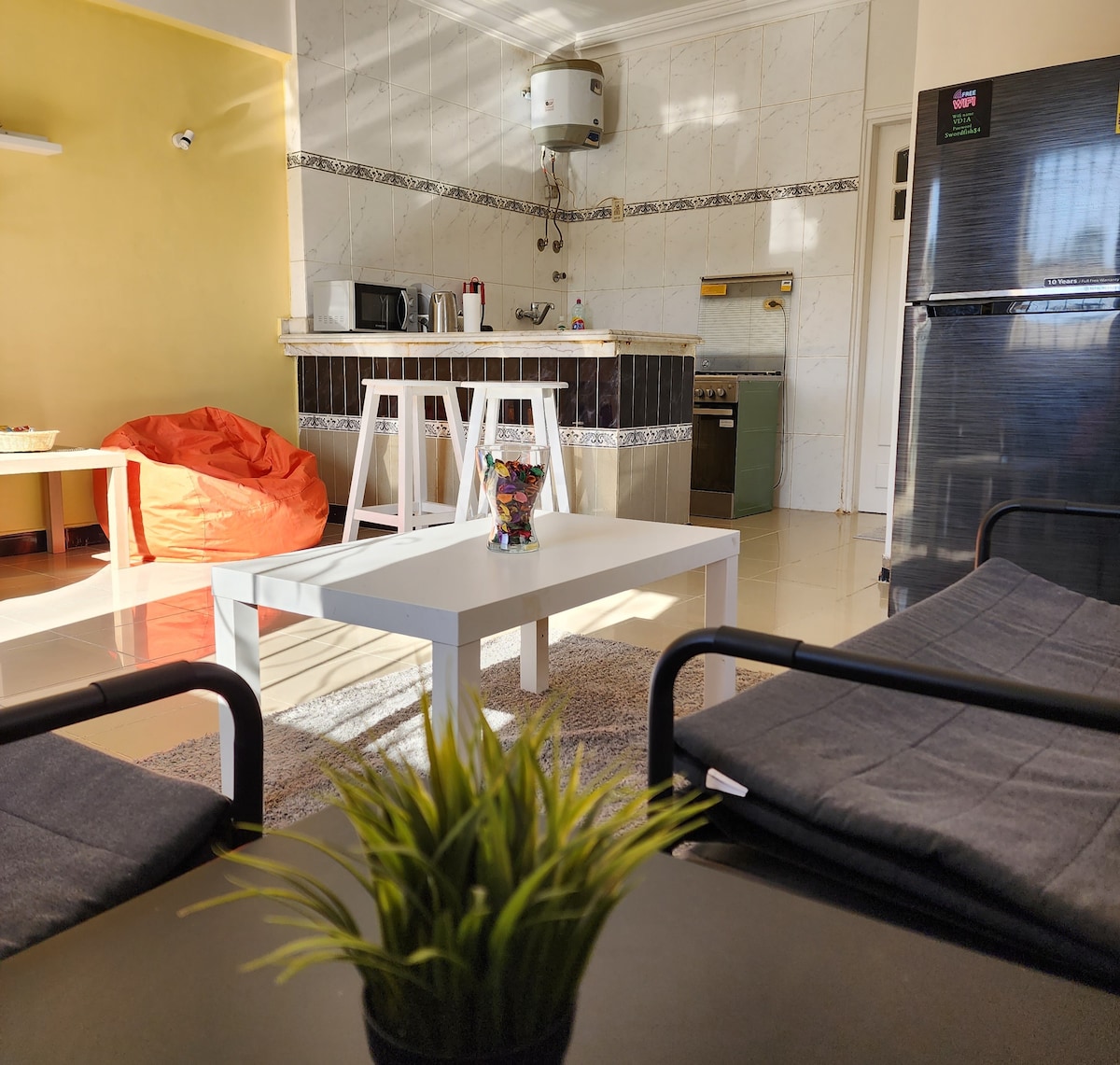 Уютная квартира с 1 спальней в центре Хадабы, Шарм-эль-Шейх. Первый этаж с 2 балконами, высокоскоростной Wi-Fi, кондиционеры, телевизор, диван-кровать, стиральная машина, полностью оборудованная кухня. Охраняемая вилла с парковкой. До магазинов, ресторанов, тренажерного зала и остановок общественного транспорта можно дойти пешком. Рядом с песчаными и коралловыми пляжами. Доступ на крышу с прекрасными закатами. Курить в помещении запрещено! Идеально подходит для пар или одиночных путешественников, жаждущих солнца и отдыха.