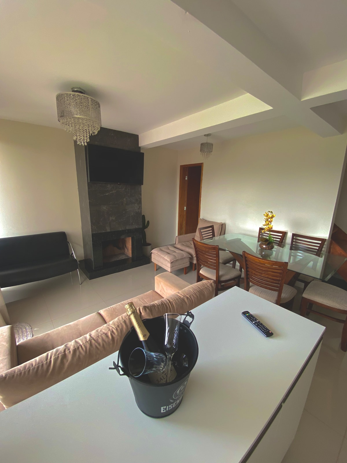 Шале с привилегированным видом на горы и плотину, бассейн с 5 шезлонгами, пруд для рыбалки, дровяная печь внутри дома(была разрезана из дерева), садовый камин, крытое барбекю, интегрированное с кухней, крытый балкон с 2 сетками, полностью оборудованная кухня, гостиная,телевизор с Netflix, Wi-Fi, 2 спальни с 2 двуспальными кроватями в каждой, две ванные комнаты,люкс с 1 кроватью размера King size, у нас также есть доступ к плотине Capivari для рыбалки,каяка ,стоя , закрытое место.