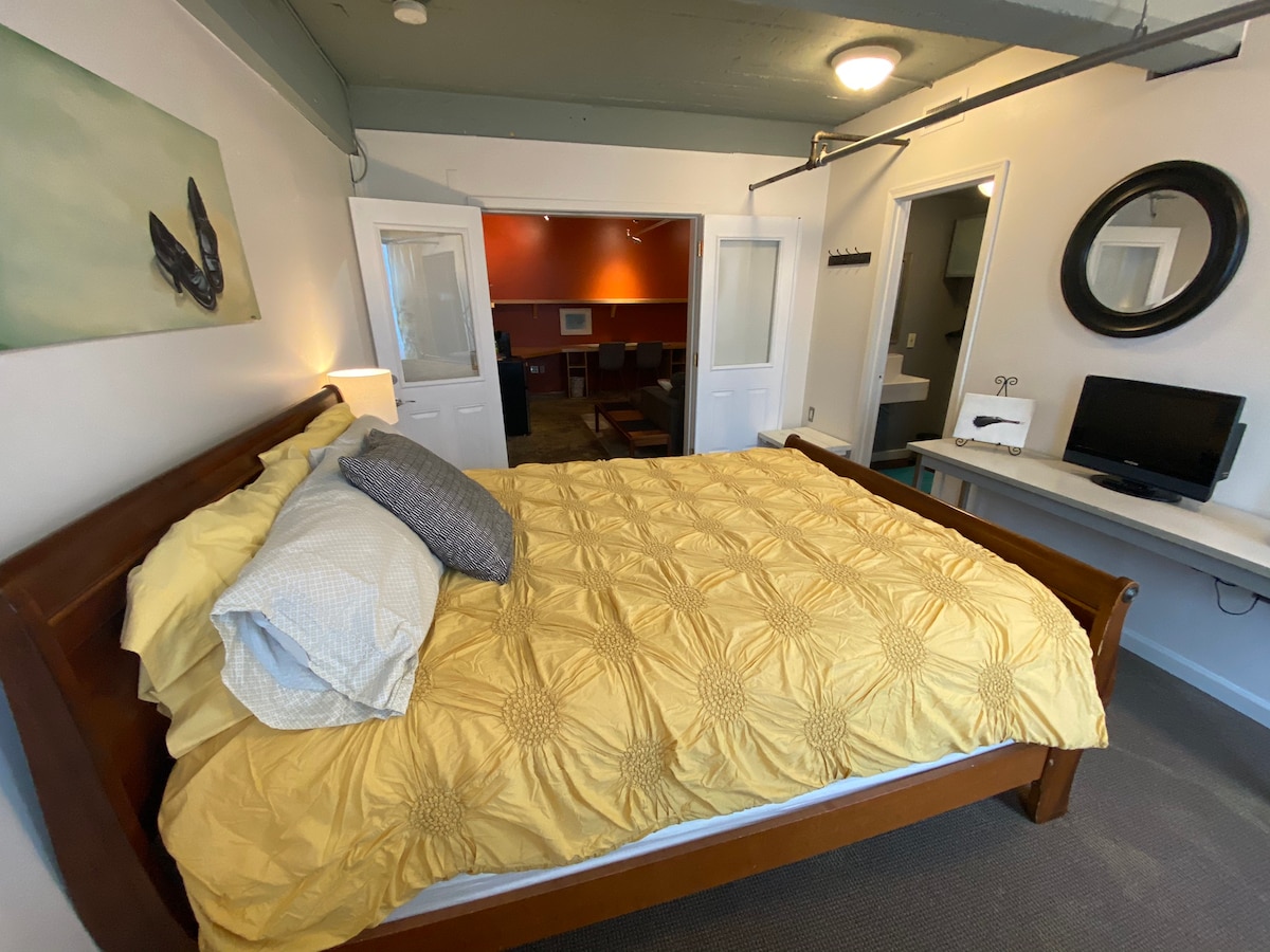 Уютный лофт-студия в центре Пуйаллапа! Городская атмосфера декора бохо, которая позволит вам почувствовать себя как дома. Полностью оборудованная ванная комната и кухня с кофейней, феном, микроволновой печью, мультиваркой и тостером. Просторная студия с удобной кроватью и отдельной гостиной зоной для отдыха. В городе по работе? Утюг, гладильная доска и фен для поездки без стресса. Останавливайтесь или оставайтесь на некоторое время. Имейте в виду, что на входе есть лестницы и зоны низкого зазора, такие как душ.