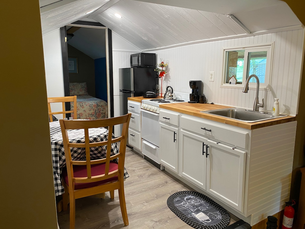 Современный крошечный фермерский дом на берегу реки Делавэр с потрясающим видом на 1 милю в любом направлении от могучего Делавэра и белоголовых орланов. Этот 4-сезонный крошечный дом оснащен кондиционером и обогревателем, а на кухне есть обеденная зона на 4 человек, которую можно превратить в кровать для двух детей или одного взрослого. Холодильник, духовка и микроволновая печь дополняют эту кухню. В ванной комнате есть унитаз, раковина и душ. В спальне установлен матрас размера Queen size из пены с эффектом памяти и большие окна, чтобы слышать шум воды.