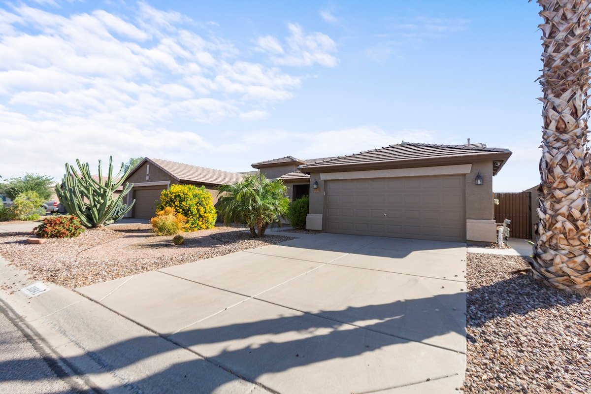 Отдохните и расслабьтесь в этом тихом доме в прекрасной пустыне. Примерно в 55 милях от аэропорта Финикса и в 80 милях от аэропорта Тусона. Пешеходные дорожки, парки, поле для гольфа, футбольные поля, продуктовый магазин, заправка и рестораны находятся очень близко. Наслаждайтесь удивительными закатами и теплой погодой. В жилье более 30 дней можно добраться до базы отдыха, бассейнов, теннисных кортов, тренажерного зала, теннисных кортов, крытых баскетбольных площадок и различных других удобств.