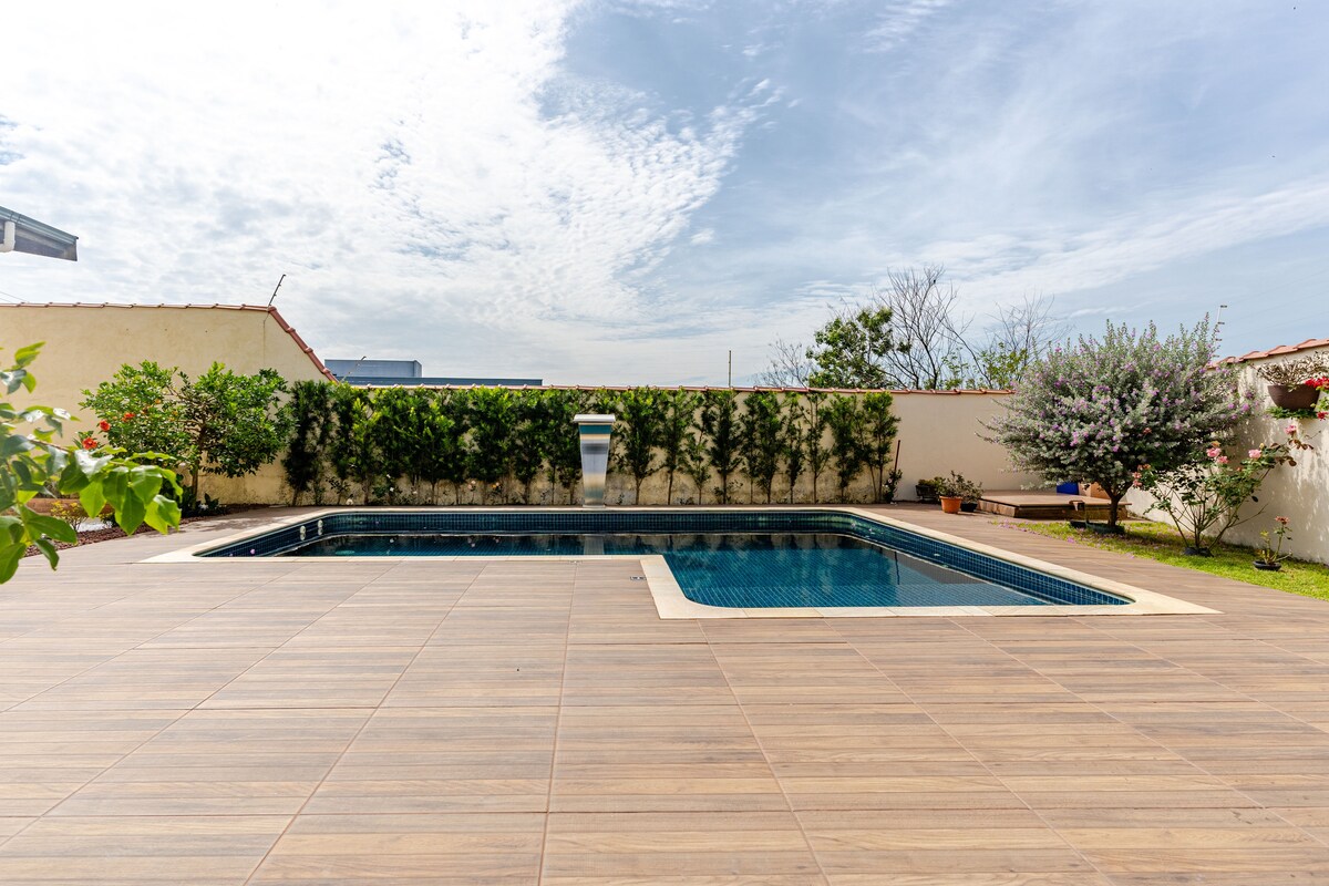 Приятная ферма для отдыха в Taubaté. Он находится в 40 минутах от Кампус-ду-Жордан и в 1:30 от Убатубы (горы и побережье). Дом удобный, имеет три спальни, являющиеся 01 люкс , социальная ванная комната, туалет и небольшой офис q может служить спальней. Номер с тремя комнатами, большой кухней и зоной обслуживания. Интернет-счет и платное телевидение. Для отдыха в доме есть хороший бассейн, душ, ранчо с морозильной камерой и барбекю, а также мини-футбольное поле и гараж на 4 машины.