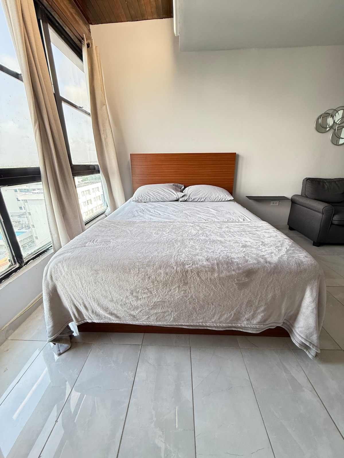 Квартира с великолепными видами, ресторанами и кафе. Вам понравится мое жилье из-за уюта, расположения и вида. Жилье идеально подходит для пар, одиночных путешественников и командировочных. Вы влюбитесь в этот вид. Расположен на верхнем этаже пентхауса (15-й) с захватывающим видом на Исла-Верде. В квартире 2 спальни, одна для хранения, 1 ванная с туалетом и мини-кухня. Круглосуточная охрана. Кроме того, есть бассейн и прачечная.