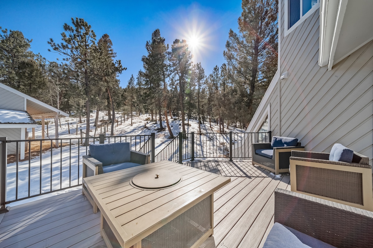 Добро пожаловать в хижину Bear Bottom, тихий горный курорт у подножья горы. Бейли. Круглый год наслаждайтесь собственной гидромассажной ванной, просторными террасами, высокоскоростным Интернетом и телевизором с потоковыми сервисами. Зарядка электромобилей доступна в ночное время. На кухне есть кофеварка эспрессо и вафельница. Низкая плата за уборку. Удобное расположение: 35 минут до Ред-Рокс, 50 минут до центра Денвера и 80 минут до Брекенриджа. ***Новая ванная комната с 1/10/26***