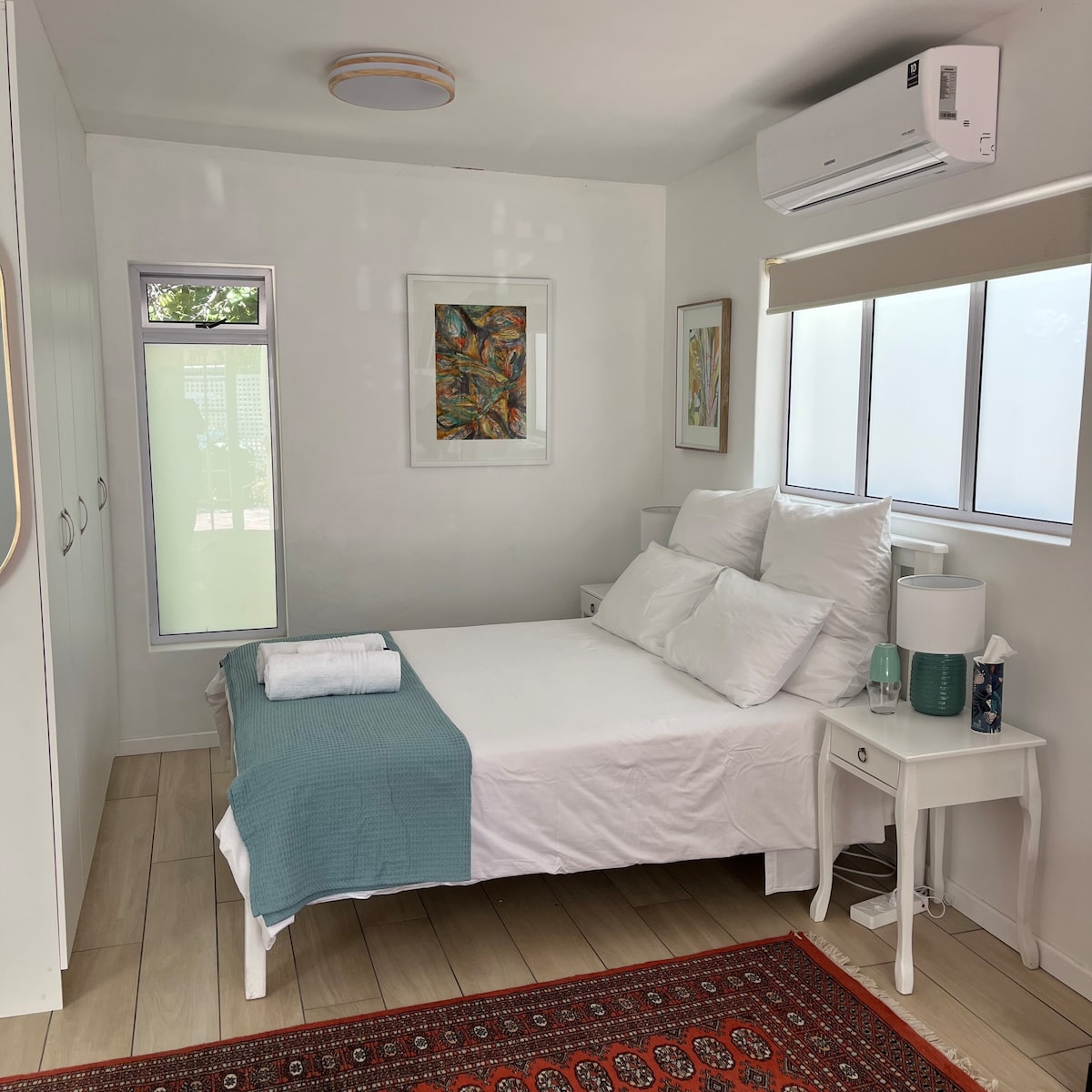 Эта квартира примыкает к нашему дому в Пайнлендсе, Кейптаун, но имеет отдельный вход (с дистанционным управлением воротами), собственной кухней и просторной ванной комнатой (туалетом/душем). Она находится на тихой улице, в 3 минутах езды от торгового центра Howard Centre, примерно в 15 минутах езды от центра Кейптауна и в 15 минутах езды от аэропорта. К услугам гостей просторная спальня с двуспальной кроватью, шкафами (вешалки предоставляются), телевизором/Wi-Fi/Netflix, панельным обогревателем и микроволновой печью/холодильником.