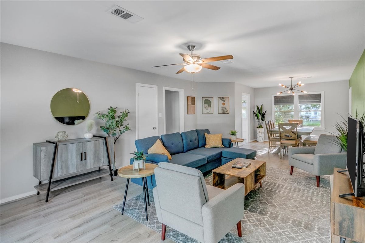 Этот красивый дом с 3 спальнями может похвастаться 2 ванными комнатами, просторным гаражом на 2 автомобиля и вмещает до 8 гостей. В гостиной есть высокие сводчатые потолки, дополненные уютным газовым камином, а в спокойном патио на заднем дворе есть удобная секция, газовый костер, гриль для барбекю и большой телевизор. Идеально подходит для семей и профессионалов, которые ищут более удобную и просторную альтернативу гостиничному номеру и удобно расположен всего в нескольких минутах ходьбы от крупных магазинов, ресторанов и больниц.