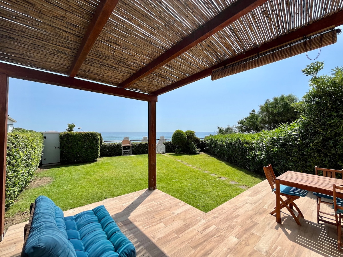 Rilassati con tutta la famiglia in questo alloggio fronte spiaggia. Graziosa ed accogliente villetta su due livelli con terrazza vista mare e accesso diretto alla spiaggia dell’esclusivo e riservato Condominio La Perla Marina, LA PERLA SUL MARE può accogliere sino a 4 ospiti. Dispone di un open space con soggiorno e cucina, un bagno e due camere da letto matrimoniali di fronte al mare.