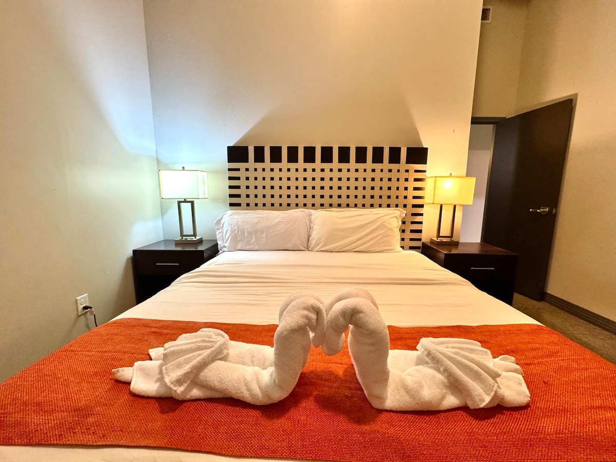 Добро пожаловать в наш удивительный небоскреб в центре Далласа! Насладитесь стильным отдыхом в нашем жилье в центре города. В непосредственной близости от нескольких ресторанов и каждого места для проведения мероприятий. Наслаждайтесь потрясающим видом через наши окна от пола до потолка или расслабьтесь на большом балконе. К услугам гостей бесплатная парковка в гараже, полностью оборудованная кухня и все удобства в роскошной квартире.