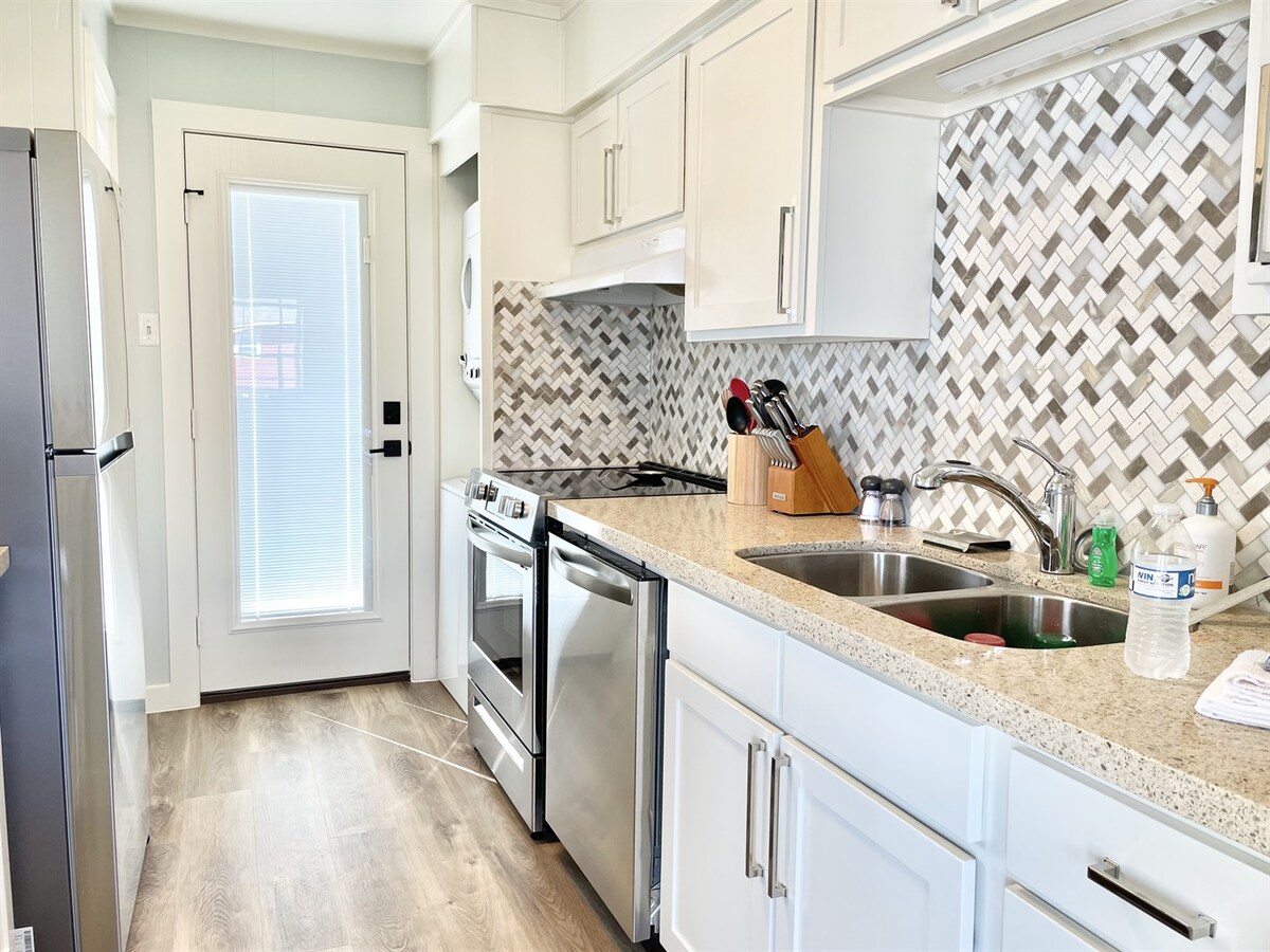 В нескольких минутах ходьбы от пляжа без шоссе. Примерно в 6 милях к западу от достопримечательностей моря в тихом пляжном районе. Идеально подходит для пары или маленькой семьи. Кровать размера Queen size и диван с двуспальной кроватью размера Queen size. Быстрый WI-FI Xfinity и 55-дюймовый телевизор Roku. Мыло, шампунь, кухонная утварь, блендеры предоставляются. Прачечная внизу со стиральной машиной и сушилкой, а также гриль, зонтики, навес, стулья, велосипеды, различные игрушки и пляжная тележка. Много хороших ресторанов поблизости. Скидки на всю неделю или месяц!