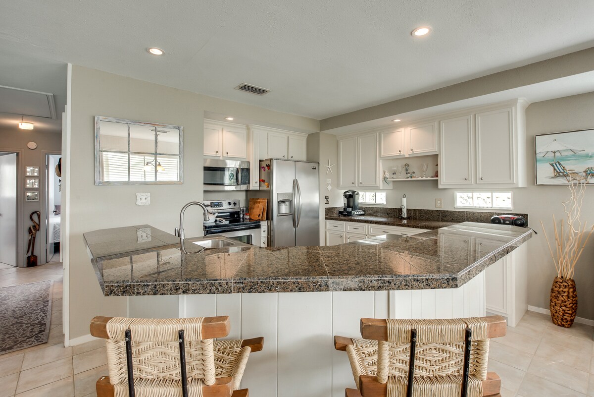 Hasta La Vista! Отдохните и расслабьтесь в этом спокойном, стильном пляжном доме. Сядьте на террасу с кофе и послушайте песни береговых птиц и успокаивайте затишье океана. Приготовьте гриль на первом этаже. Выпейте вкусный коктейль на патио во время игры в кукурузную нору. Приготовьте сладкие соморы в костровой яме. Пройдите 3-5 минут пешком до пляжа, не уклоняясь от пробок или перехода на главную улицу. Наслаждайтесь всей историей и очарованием острова Галвестон!