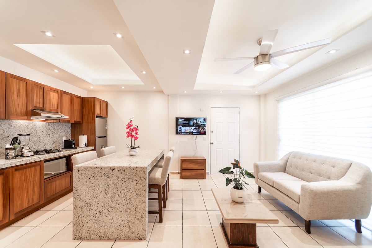 Добро пожаловать в ВАШЕ жилье, где вас ждут захватывающие закаты и вид на океан. Хотите поплавать с захватывающей панорамой? Из панорамного бассейна на крыше открывается невероятный вид! Наш современный кондоминиум продуман со всеми удобствами, которые вы ожидаете. Барбекю на крыше и в тренажерном зале? Да! Наше расположение идеальное: 10 минут ПЕШКОМ до пляжа, ресторанов, баров, продуктовых магазинов, торгового центра, кинотеатра и больницы! Малекон, Романтика и Марина находятся в 10 минутах езды!