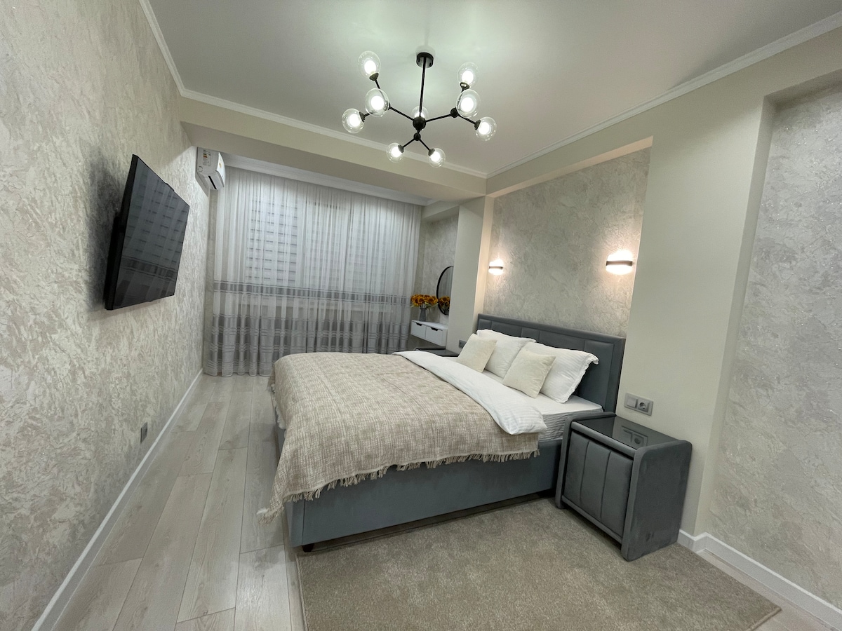 Эта специально спроектированная квартира создана для уникального отдыха в Кишиневе. В ней есть удобная спальня с гардеробом, идеально подходящая для краткосрочного или длительного проживания. В гостиной есть удобный диван, идеально подходит для отдыха. Для дополнительного комфорта ванная комната и коридор оснащены теплыми полами, обеспечивающими приятную атмосферу в любое время года. К услугам гостей частная парковка на подземном паркинге, обеспечивающая безопасность и спокойствие для автомобиля.