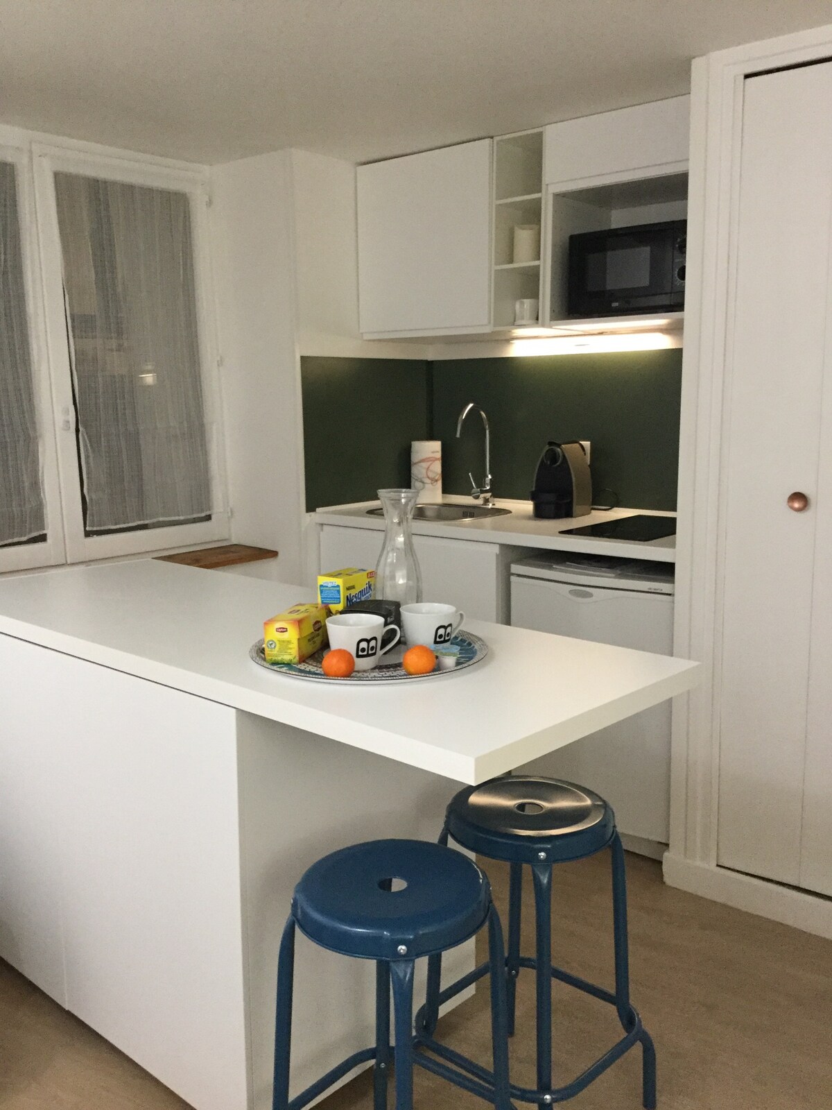 Наслаждайтесь стильным и центральным жильем. Красивая тихая квартира в 50 метрах от площади Яуде с видом на парк рядом со всеми удобствами (трамвай, автобус, подземная парковка, бар, ресторан...) Тип T2 площадью 48 м2, удобный, вмещающий до 4 гостей благодаря дивану-кровать. Здесь есть все, что нужно для проживания, и оно было оформлено со вкусом. Идеально для пар и семей, все было спроектировано, чтобы облегчить ваше пребывание и почувствовать себя как дома.